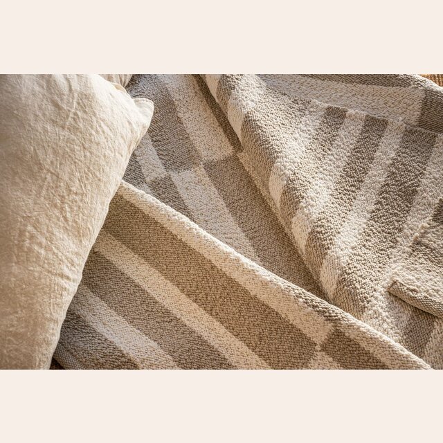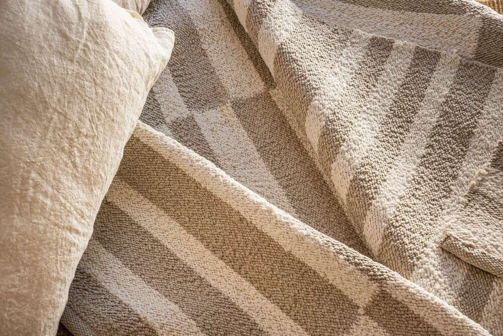 Alfombra a rayas de polipropileno apta para exterior techado o interior.