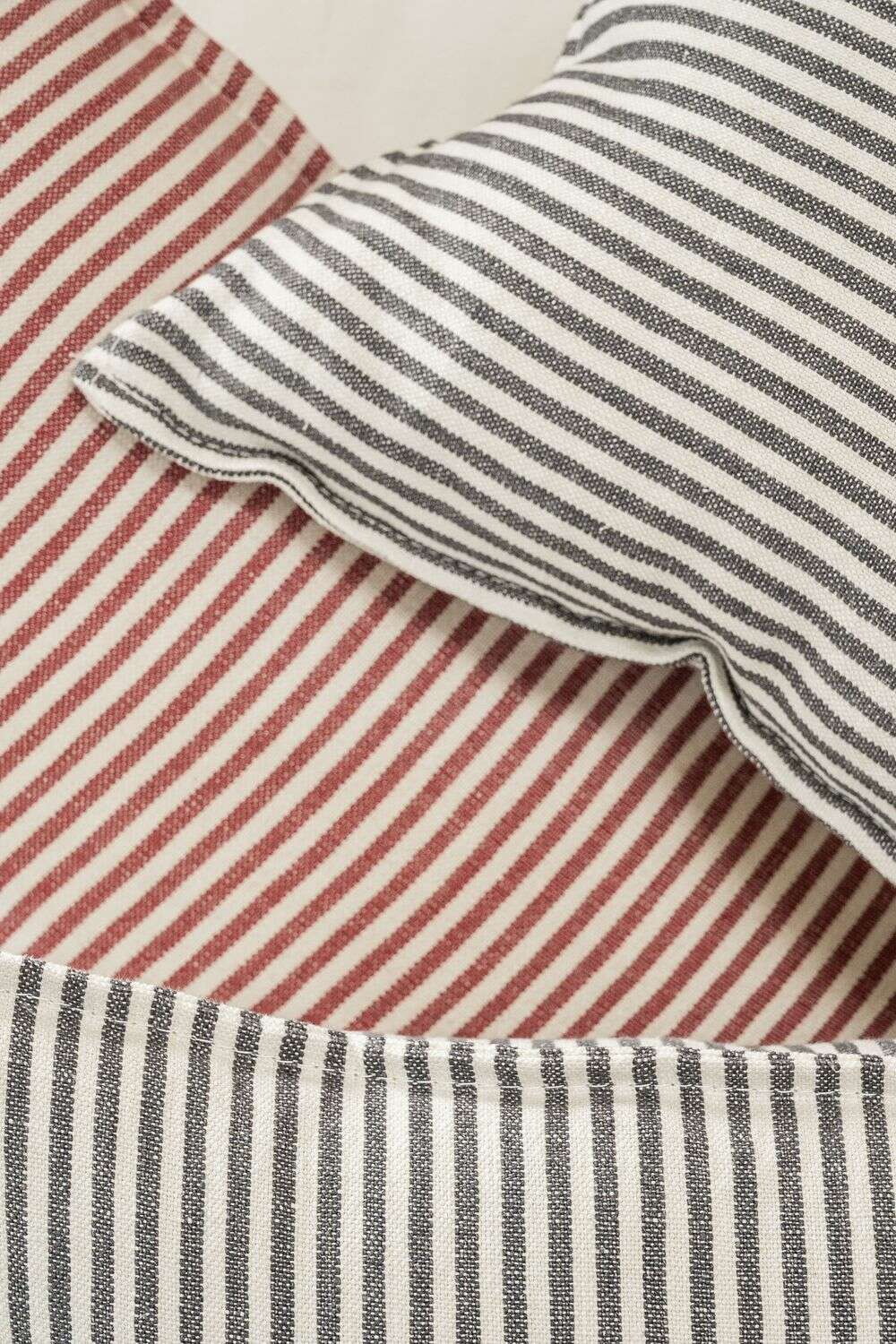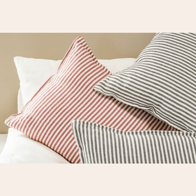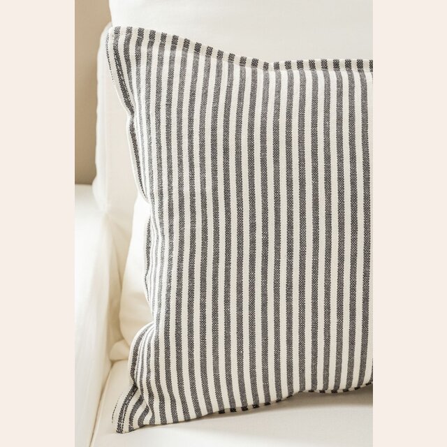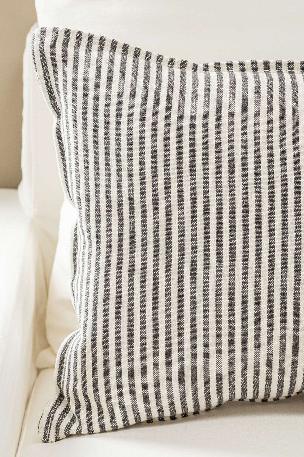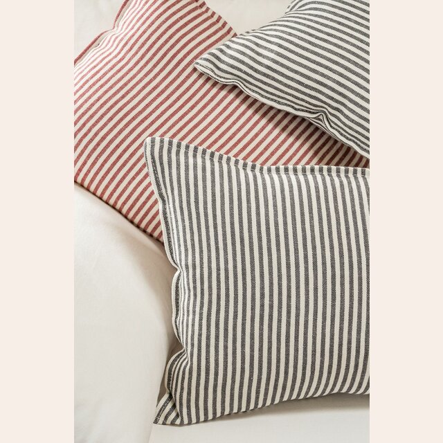 ALMOHADON 100% LINO RAYAS GRIS OSCURO / AZUL - 70 X 43 CMS