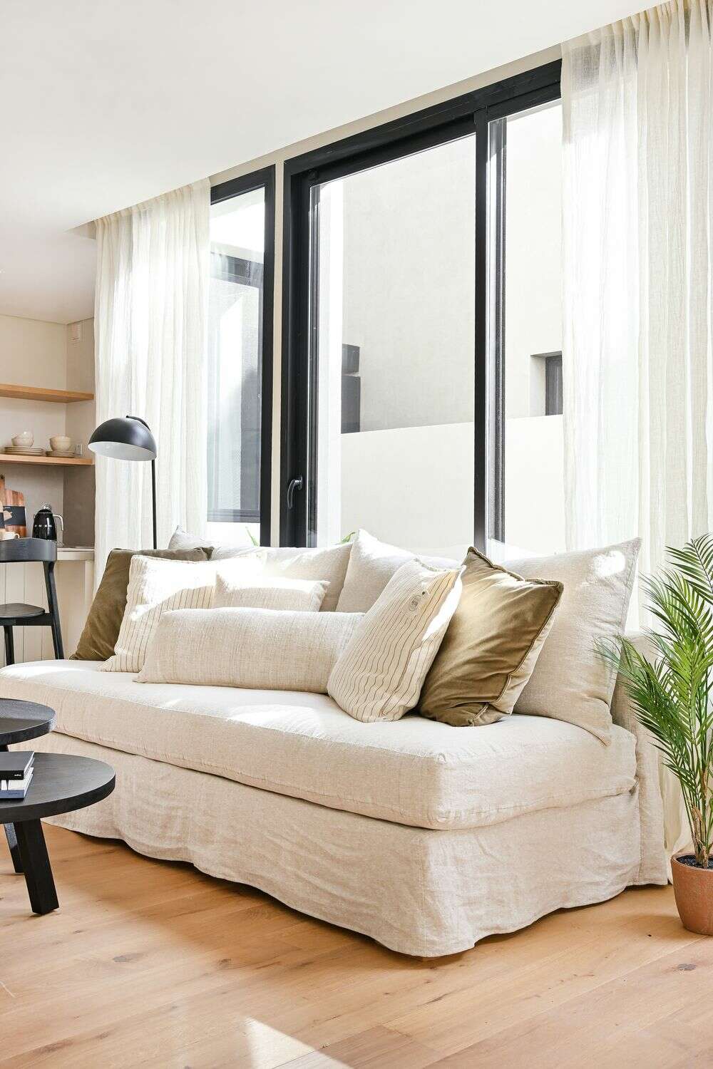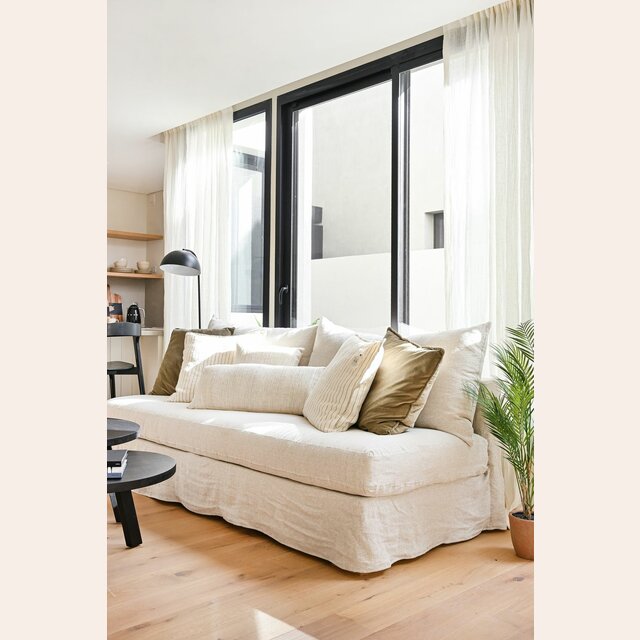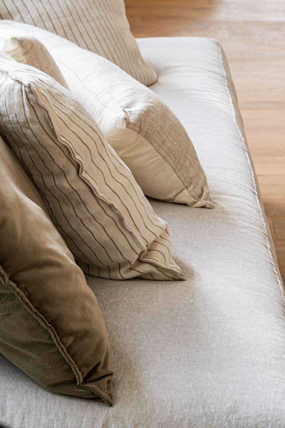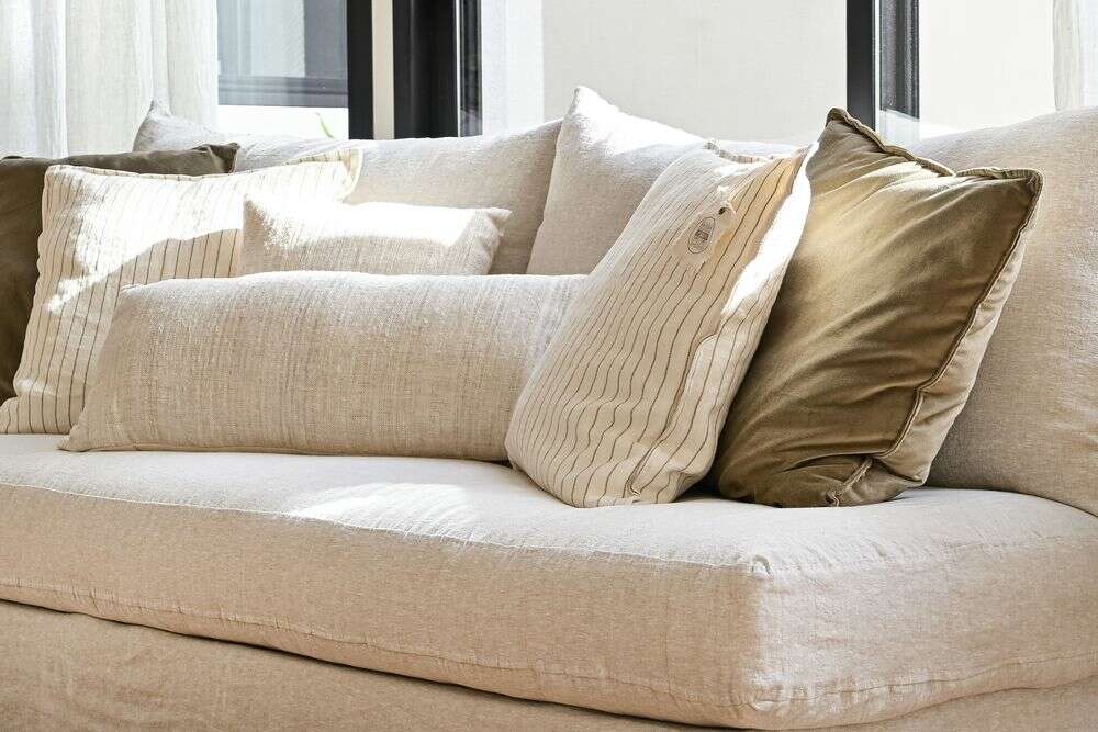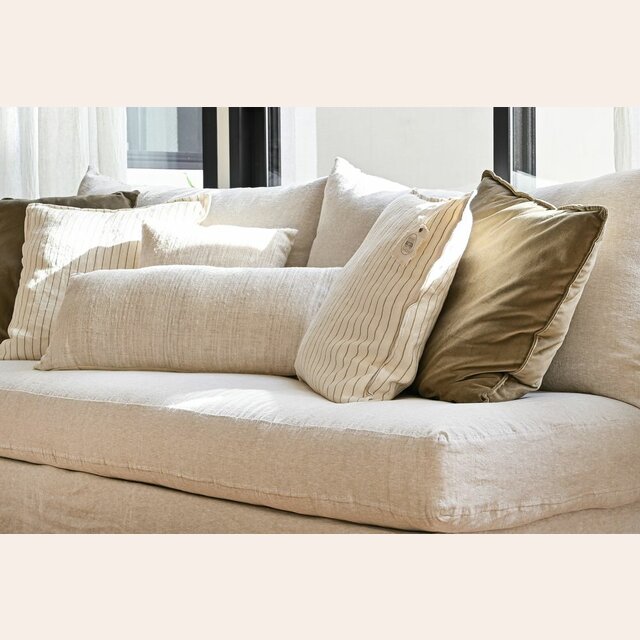 ALMOHADON LINO ALTO GRAMAJE RAYADO OFF WHITE - 55 X 55