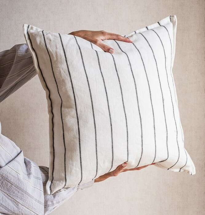 ALMOHADON LINO RAYADO GRIS - 55 X 55 CMS