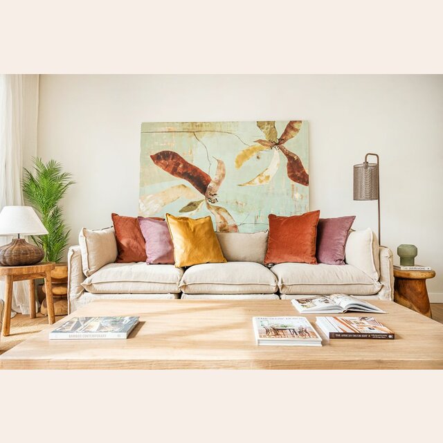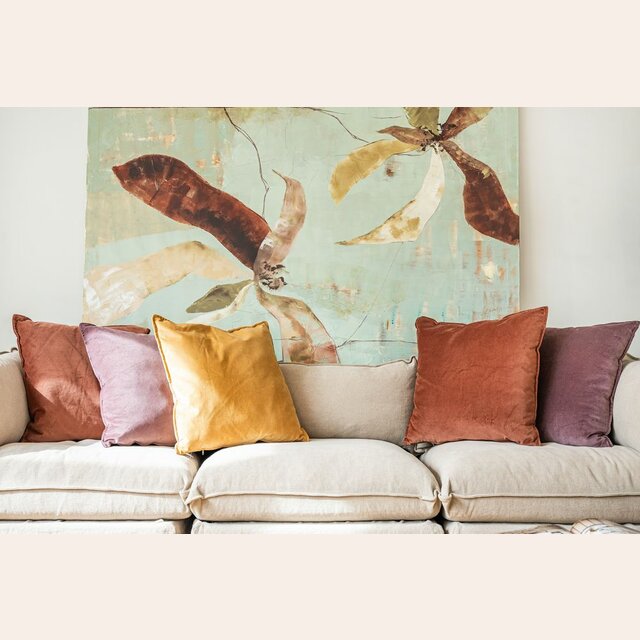 Almohadon con funda de terciopelo natural color cobre.