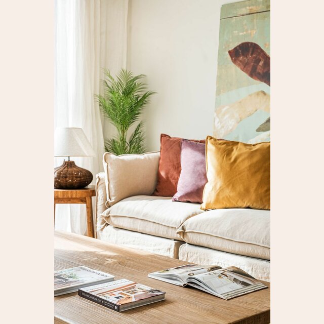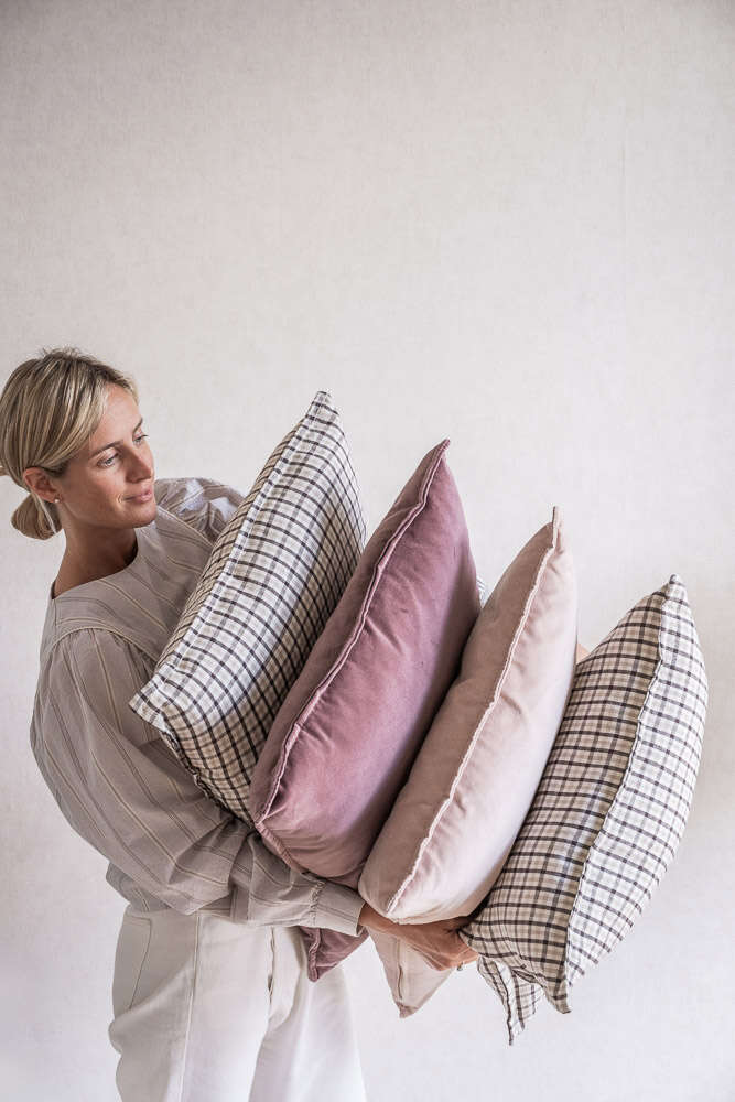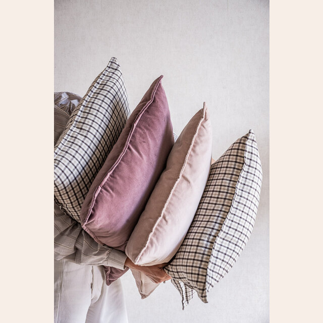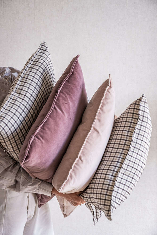 Para combinar con cuadriculados, rayados, terciopelos en otro tono y linos, este acento en color uva y terciopelo suave eleva el estilismo de tu living o dormitorio y aporta calidez y carácter.
