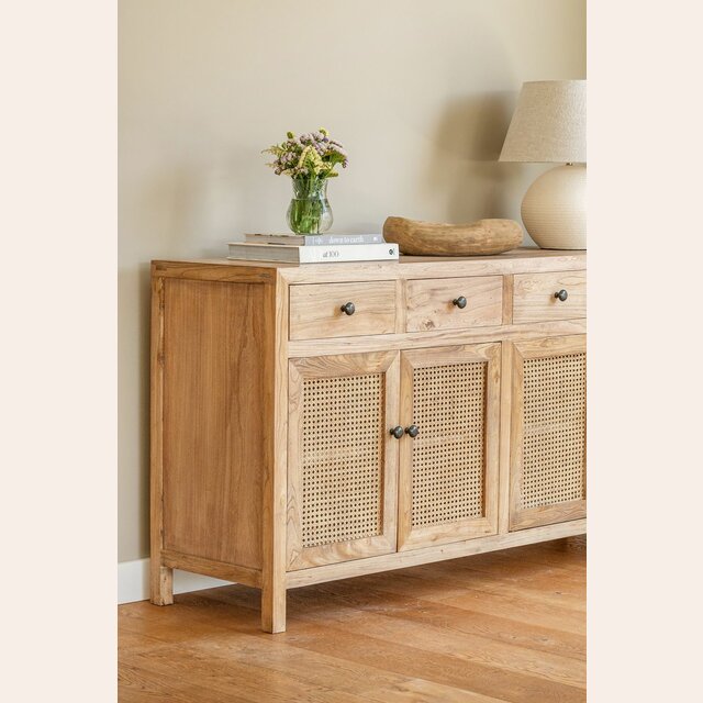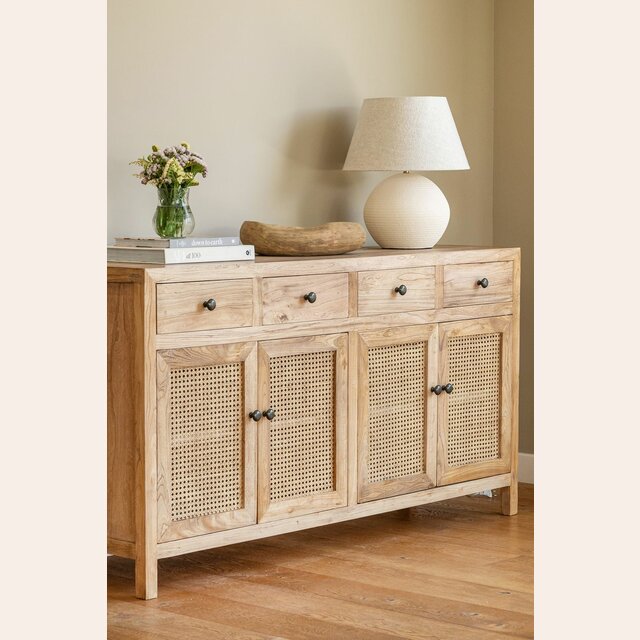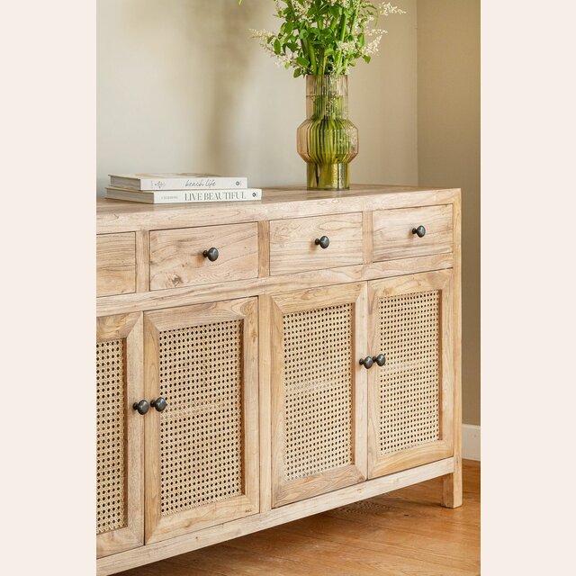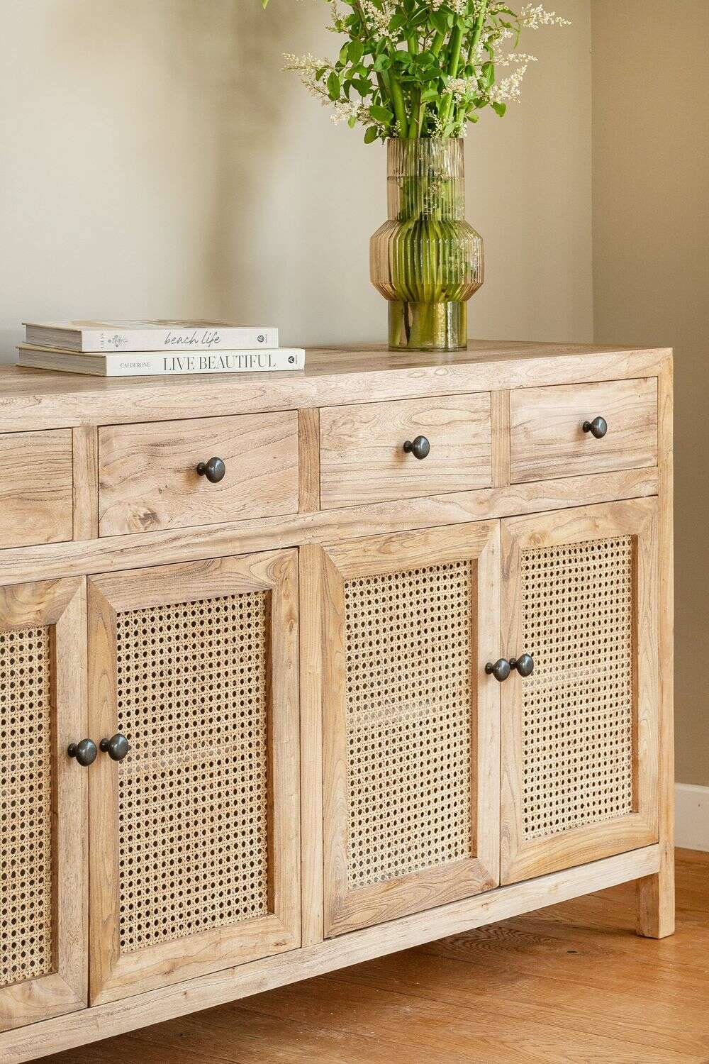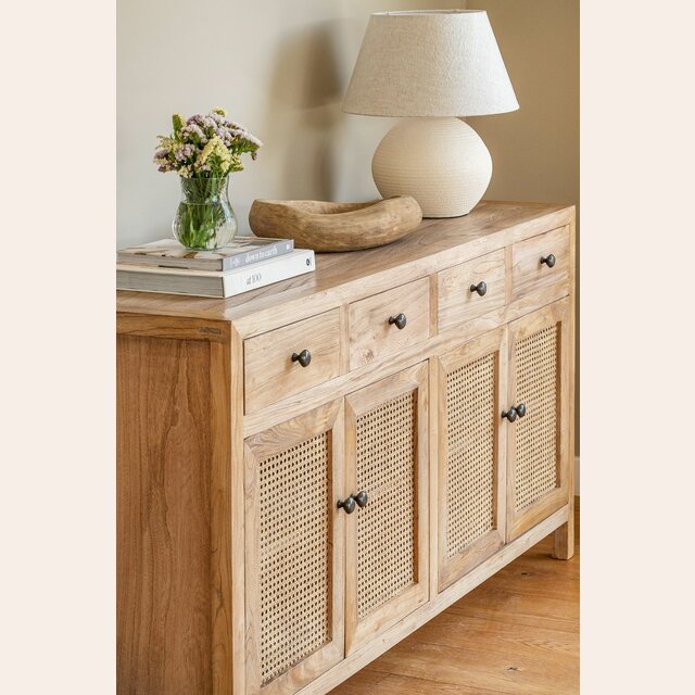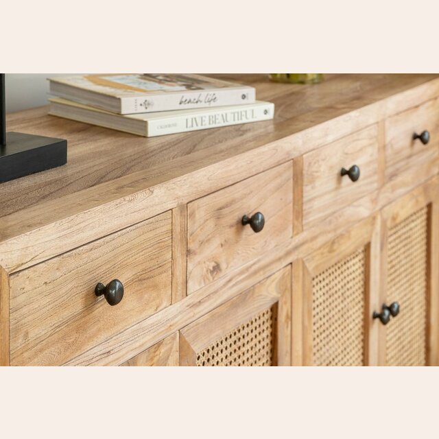 Gran aparador macizo con puertas de esterilla y 4 cajones.  Amplio almacenamiento.
