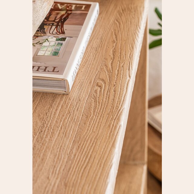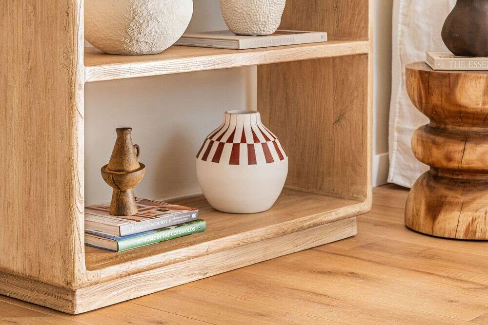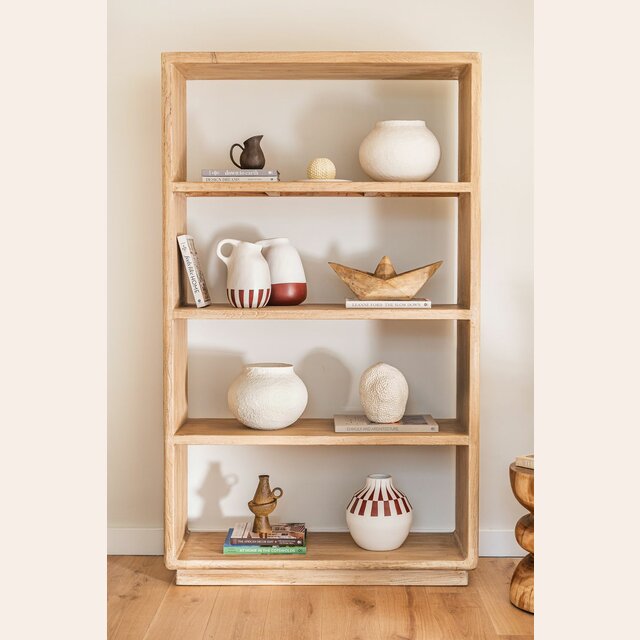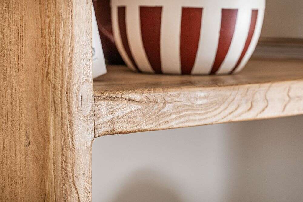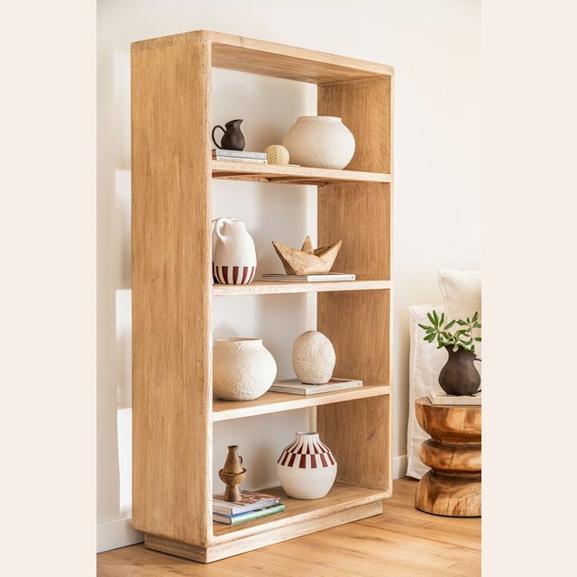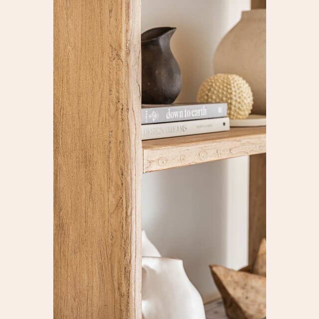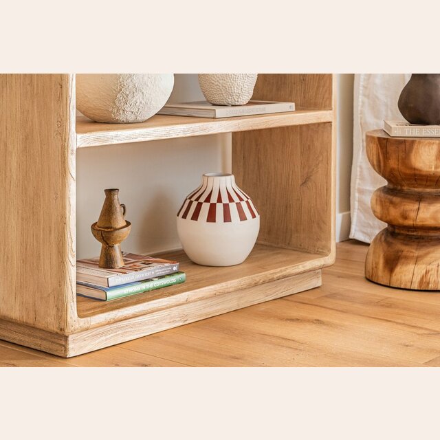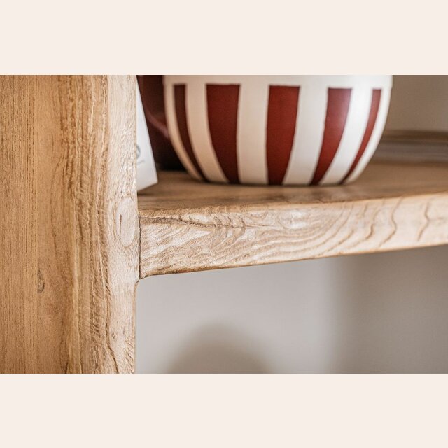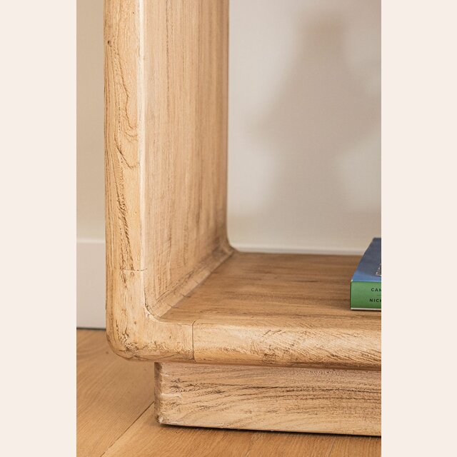 Gran biblioteca de olmo antiguo en lustre natural con suaves terminaciones curvas.