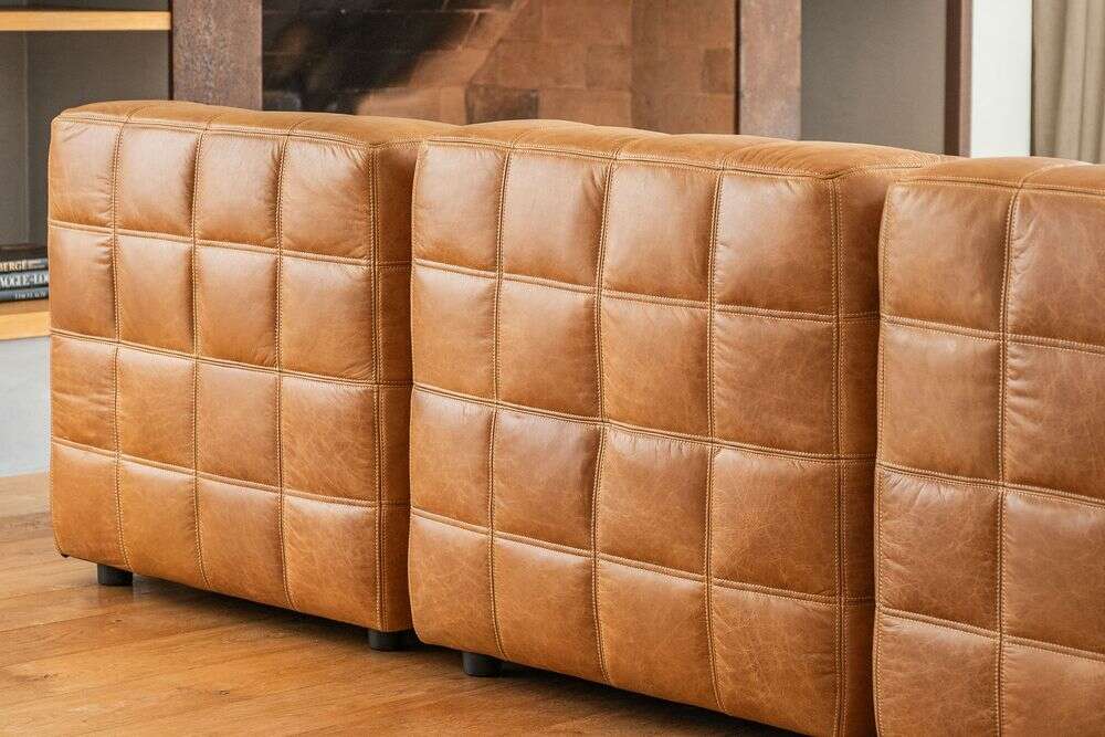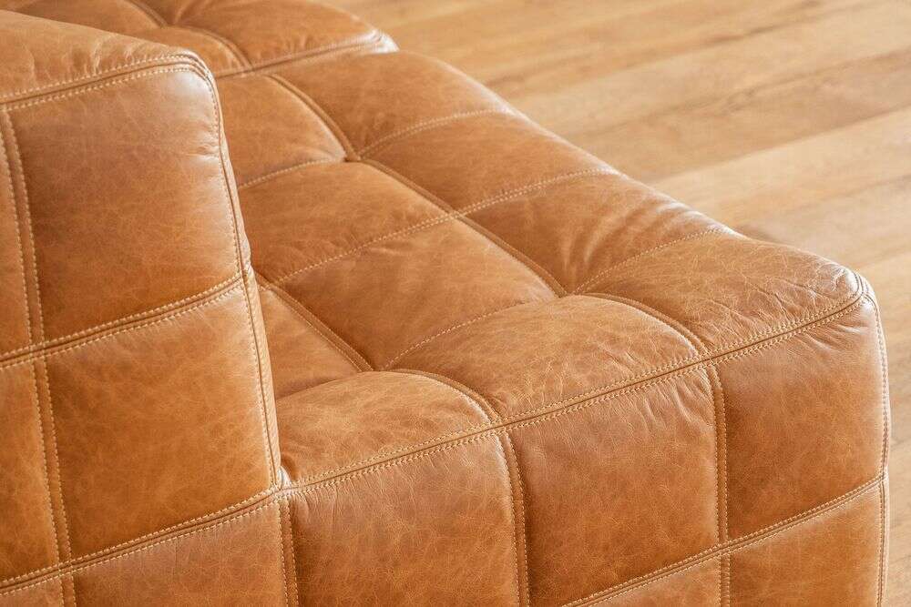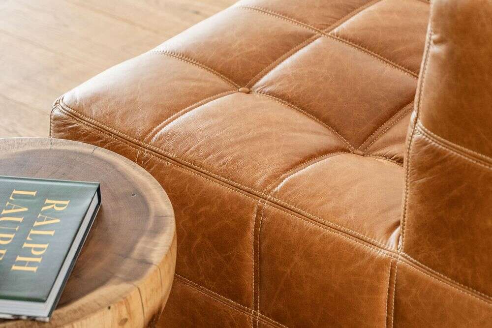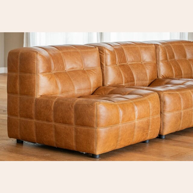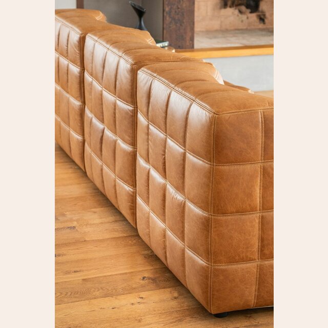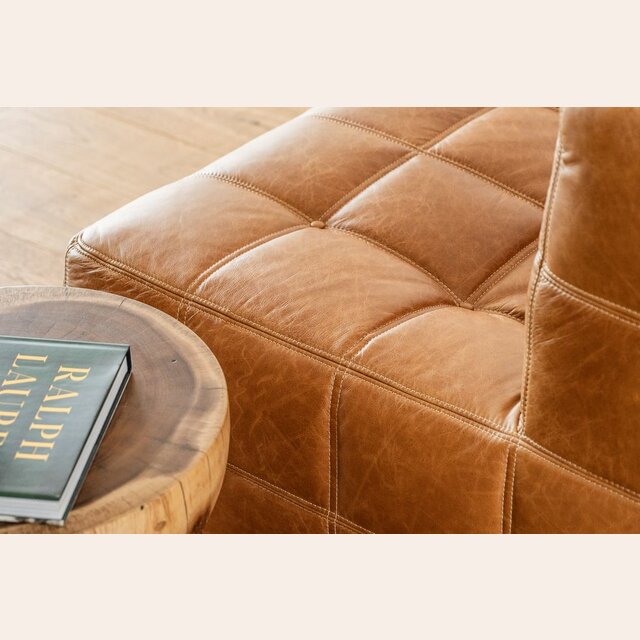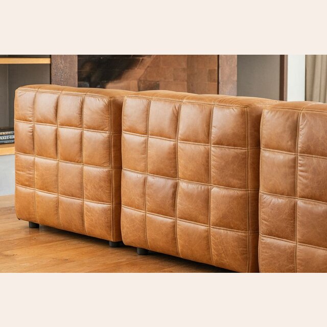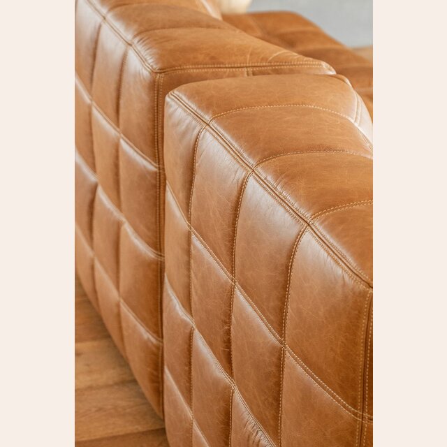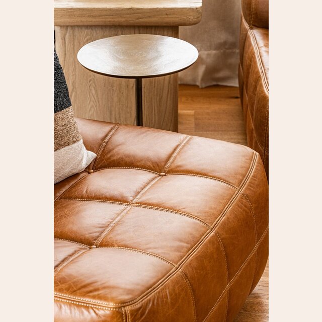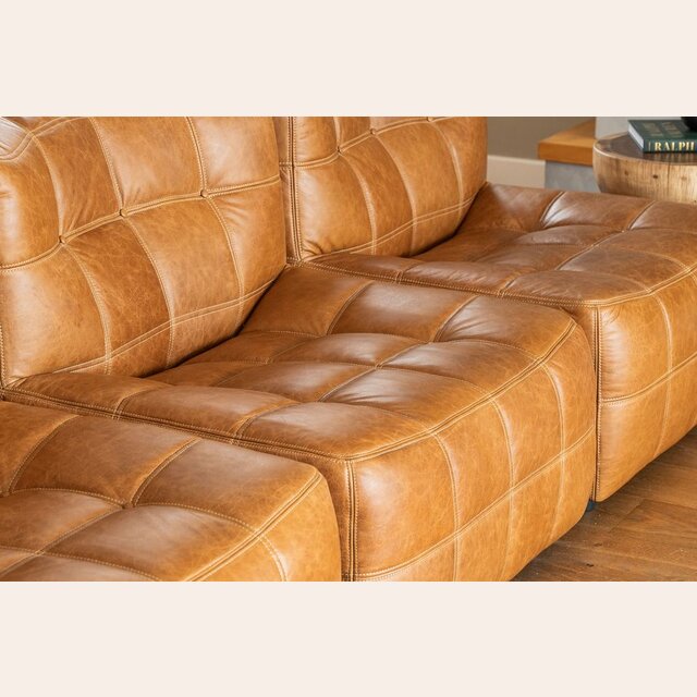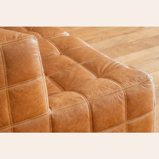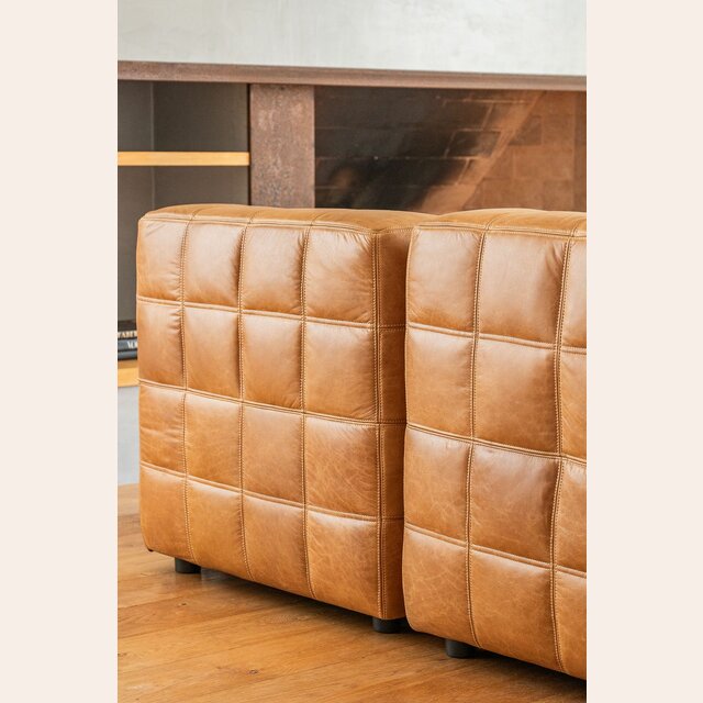 Sillón de 1 cuerpo o butaca amplia encastrable (pueden unirse entre sí formando un sillón de 2, 3 o 4 cuerpos) - de cuero italiano envejecido color caramelo.
