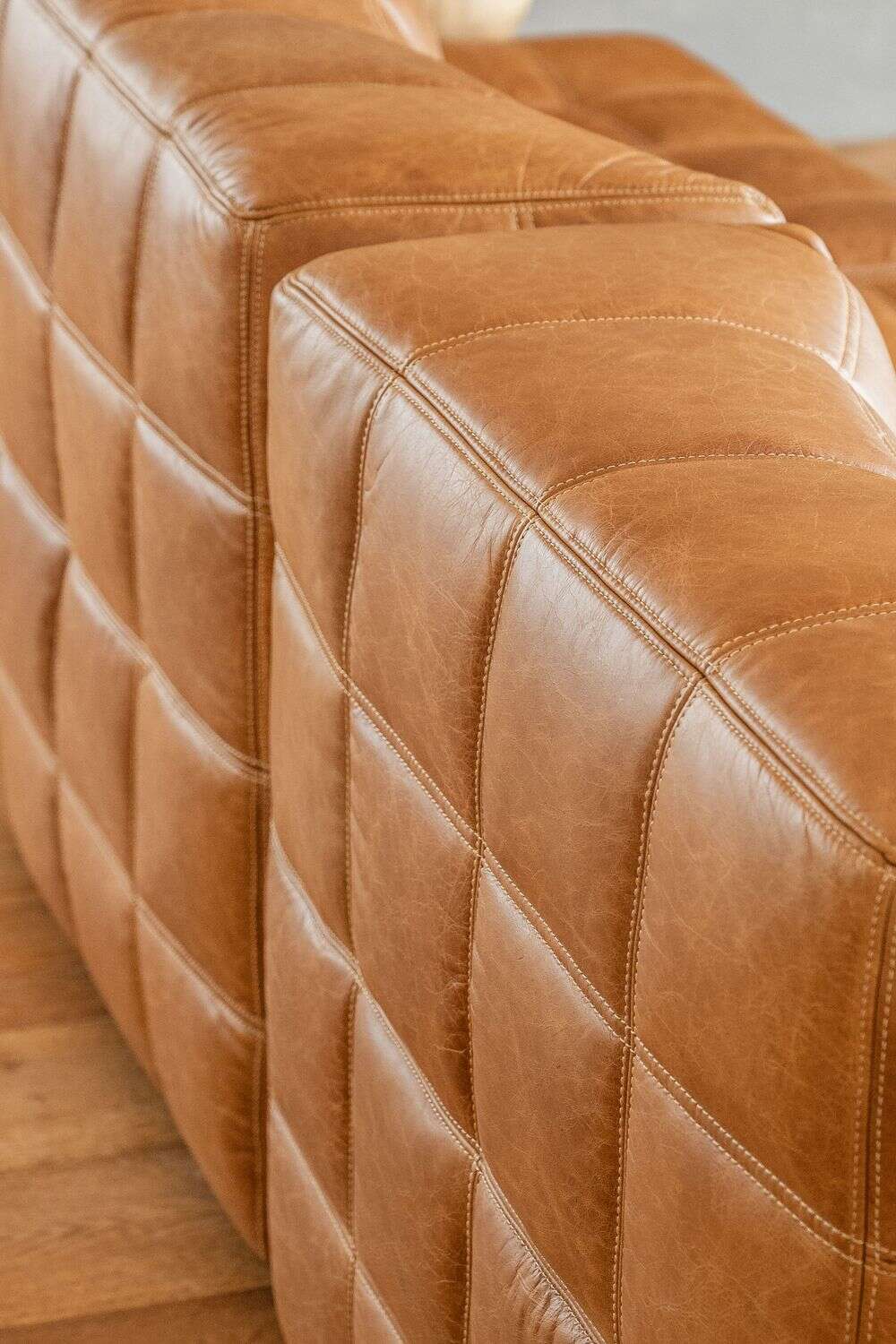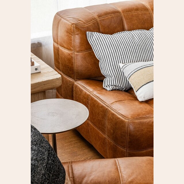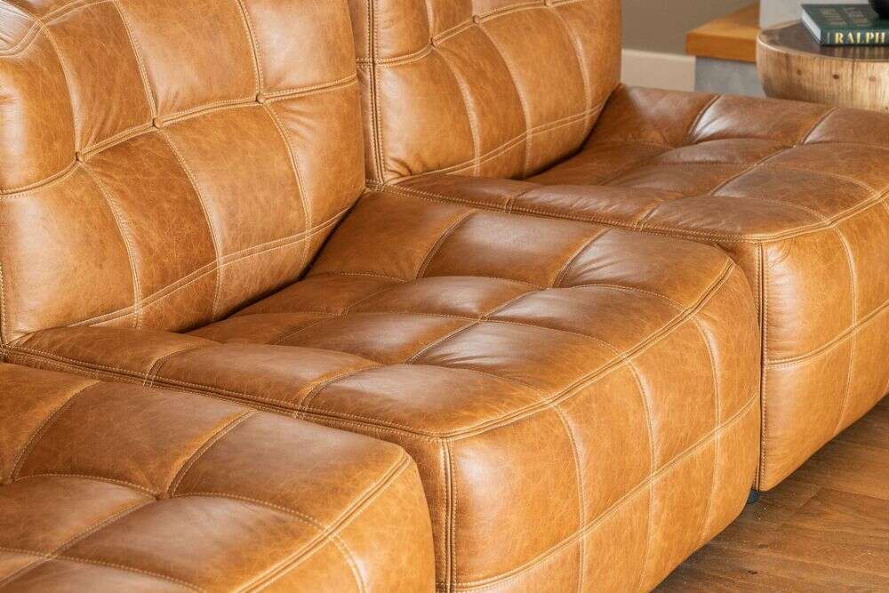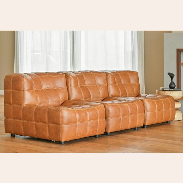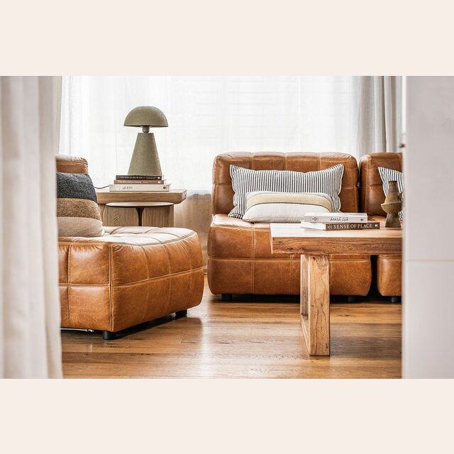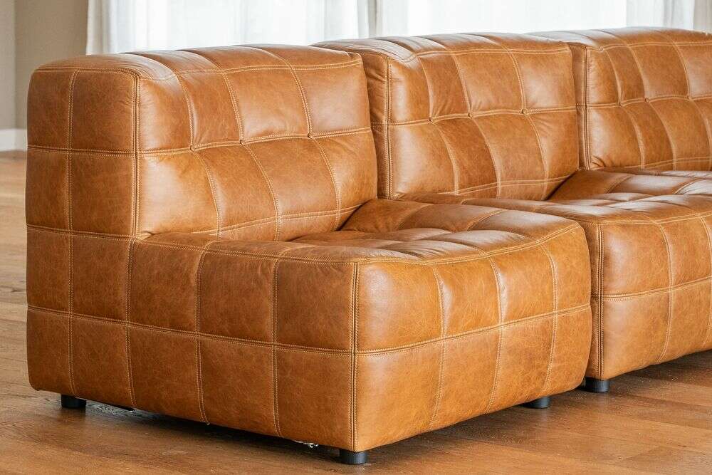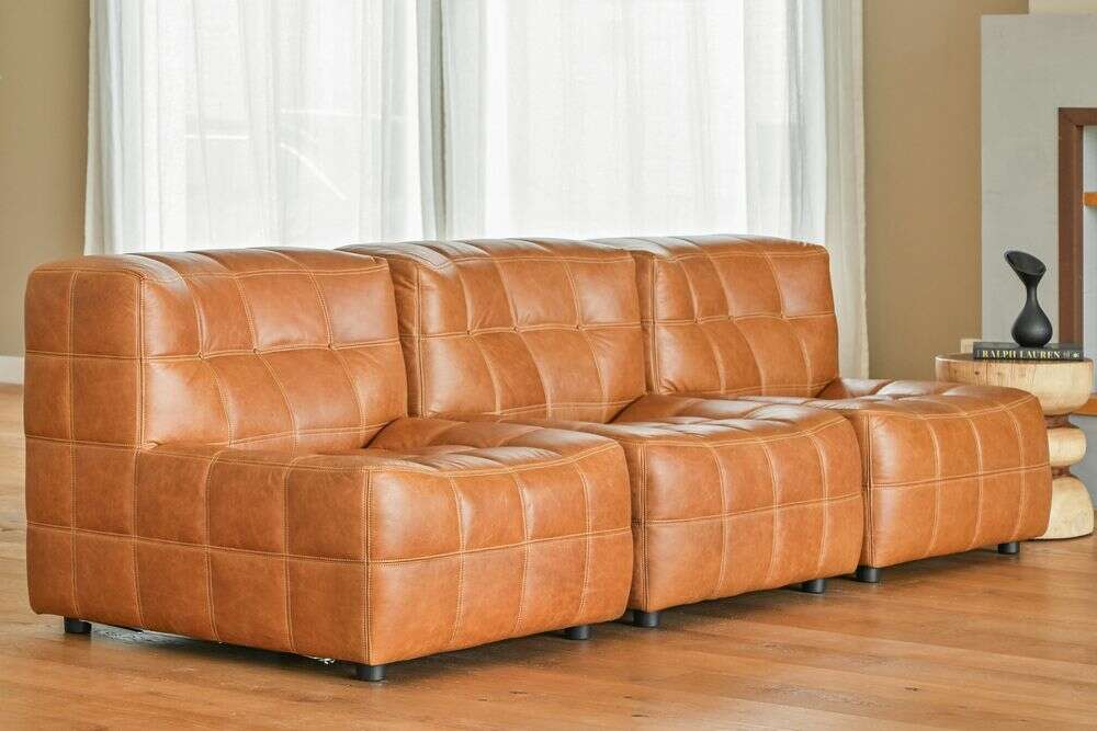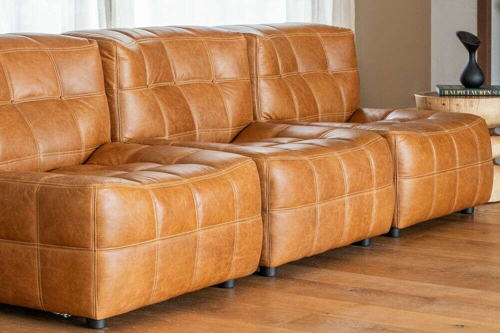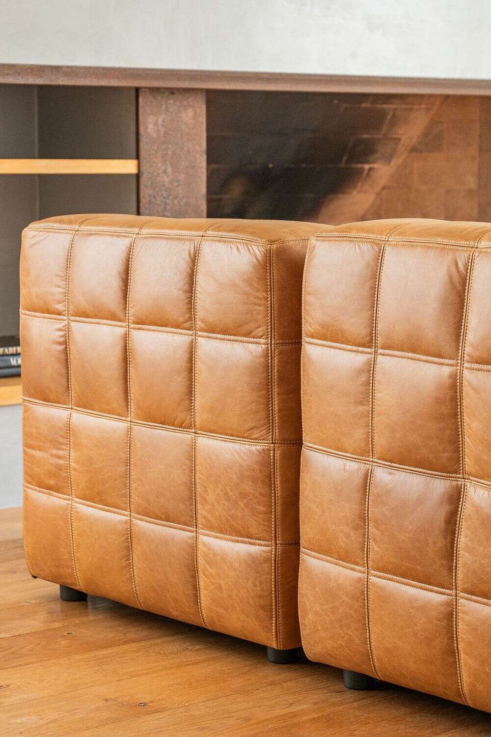 Sillón de 1 cuerpo o butaca amplia encastrable (pueden unirse entre sí formando un sillón de 2, 3 o 4 cuerpos) - de cuero italiano envejecido color caramelo.