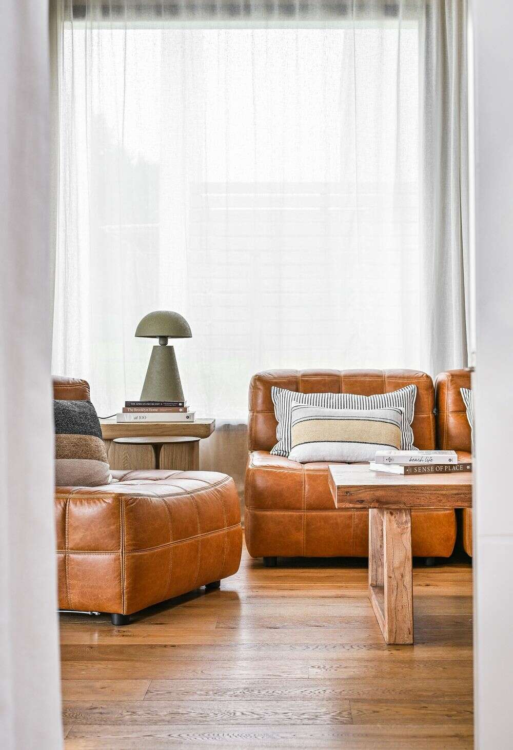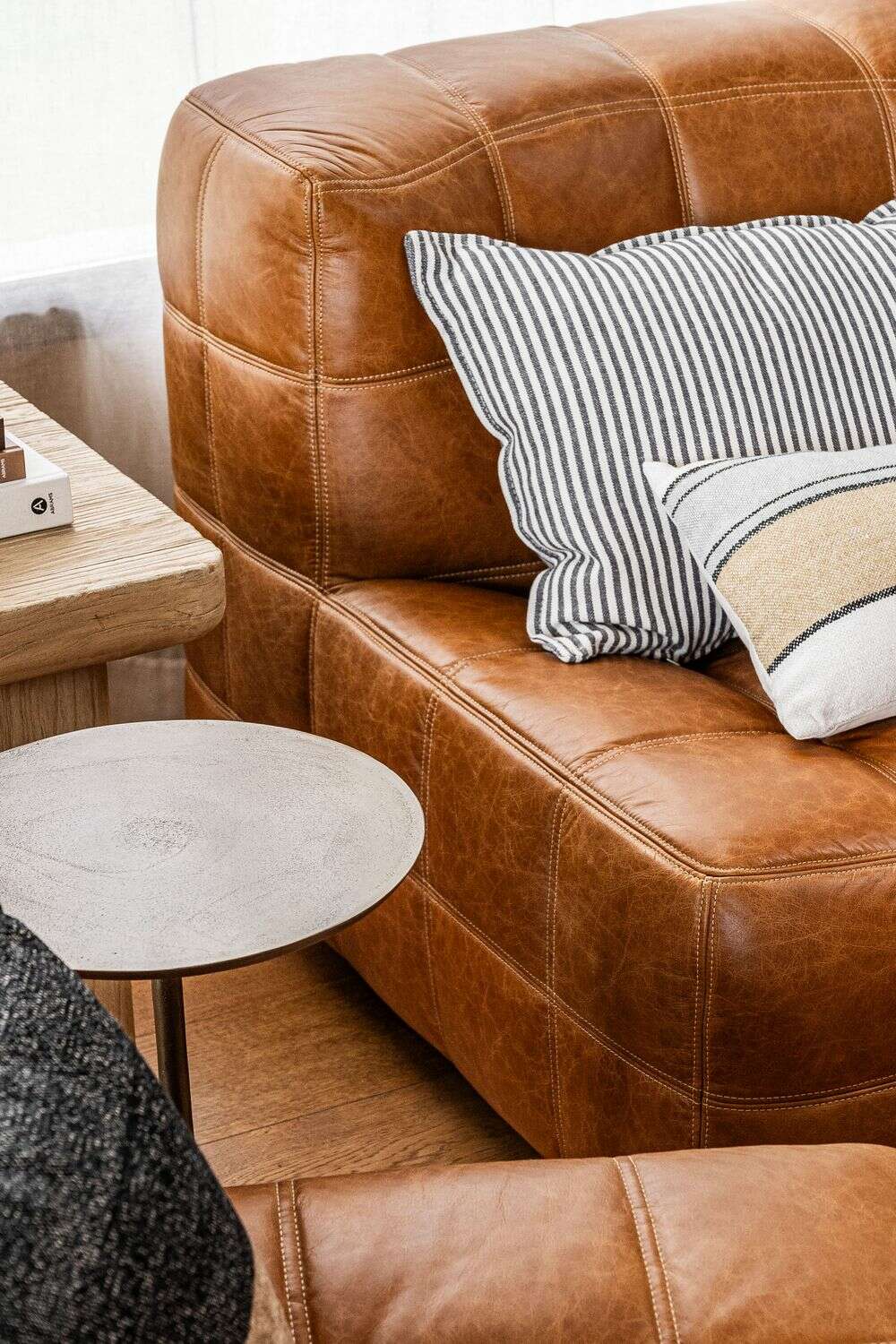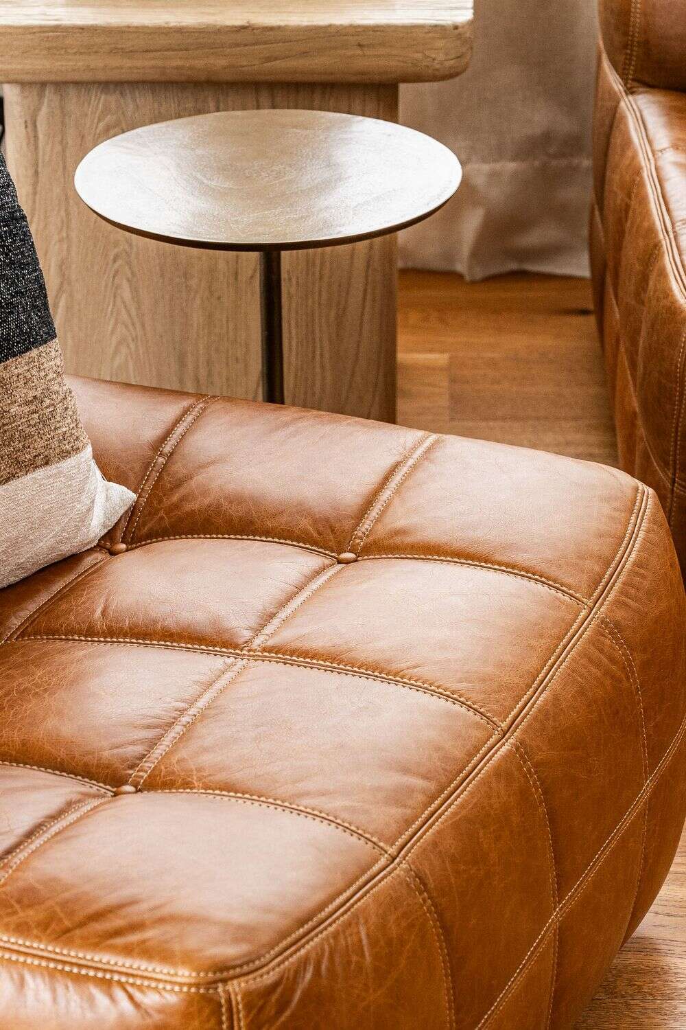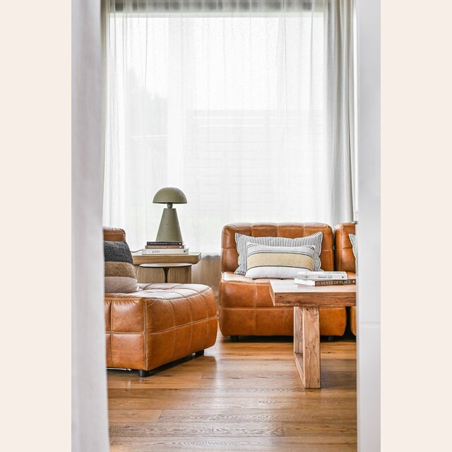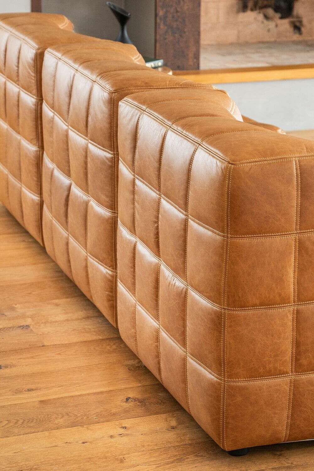 Sillón de 1 cuerpo o butaca amplia encastrable (pueden unirse entre sí formando un sillón de 2, 3 o 4 cuerpos) - de cuero italiano envejecido color caramelo.