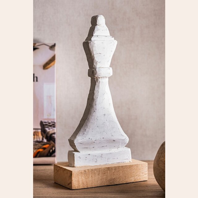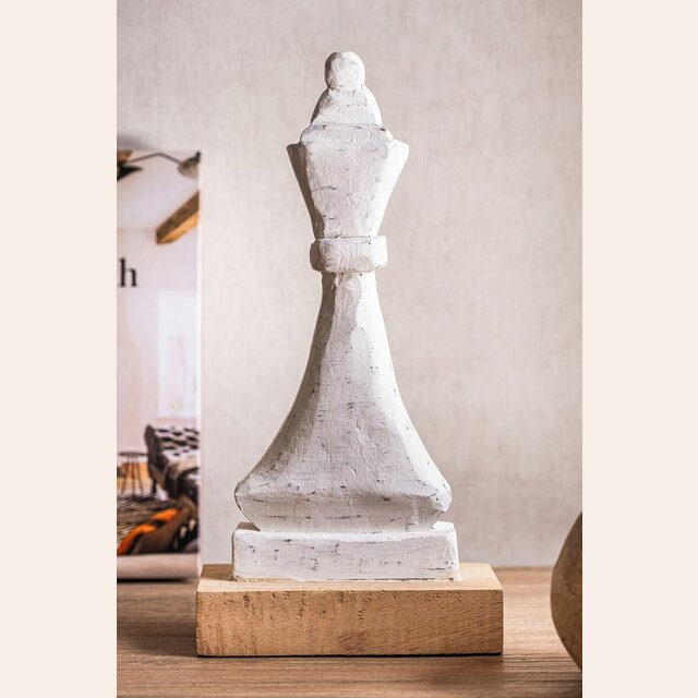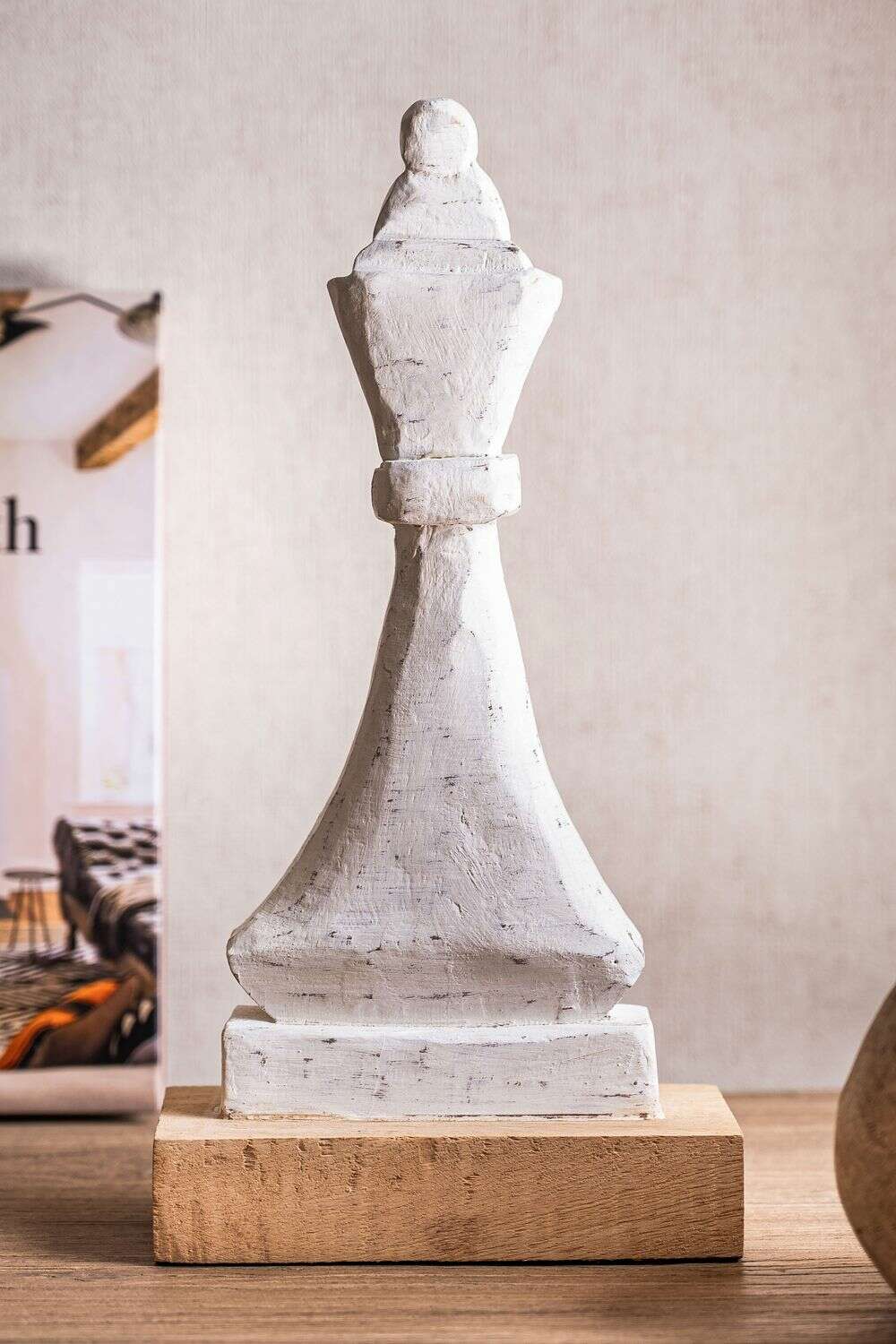 ESCULTURA PIEZA AJEDREZ MADERA - REINA BLANCA