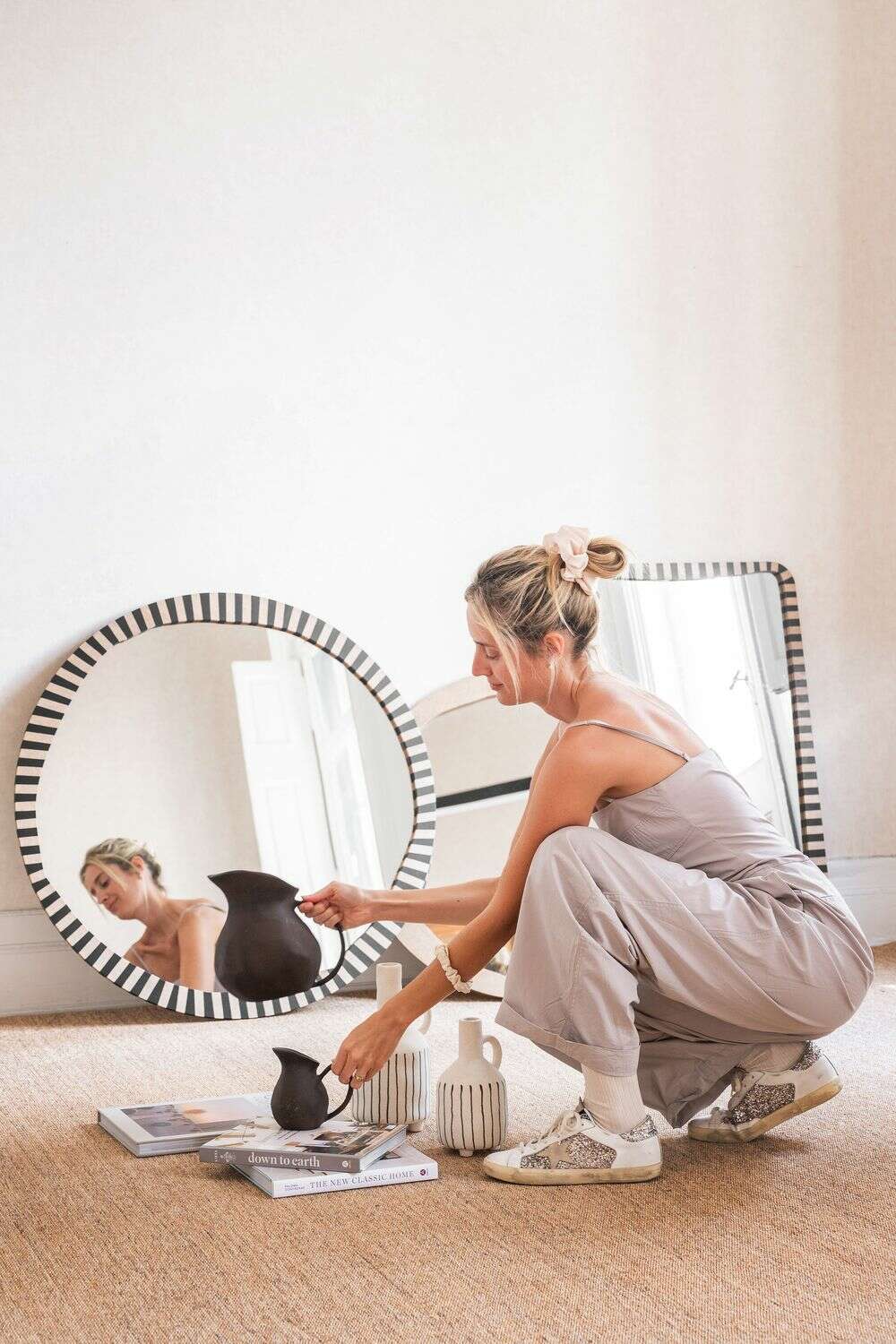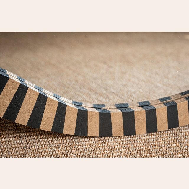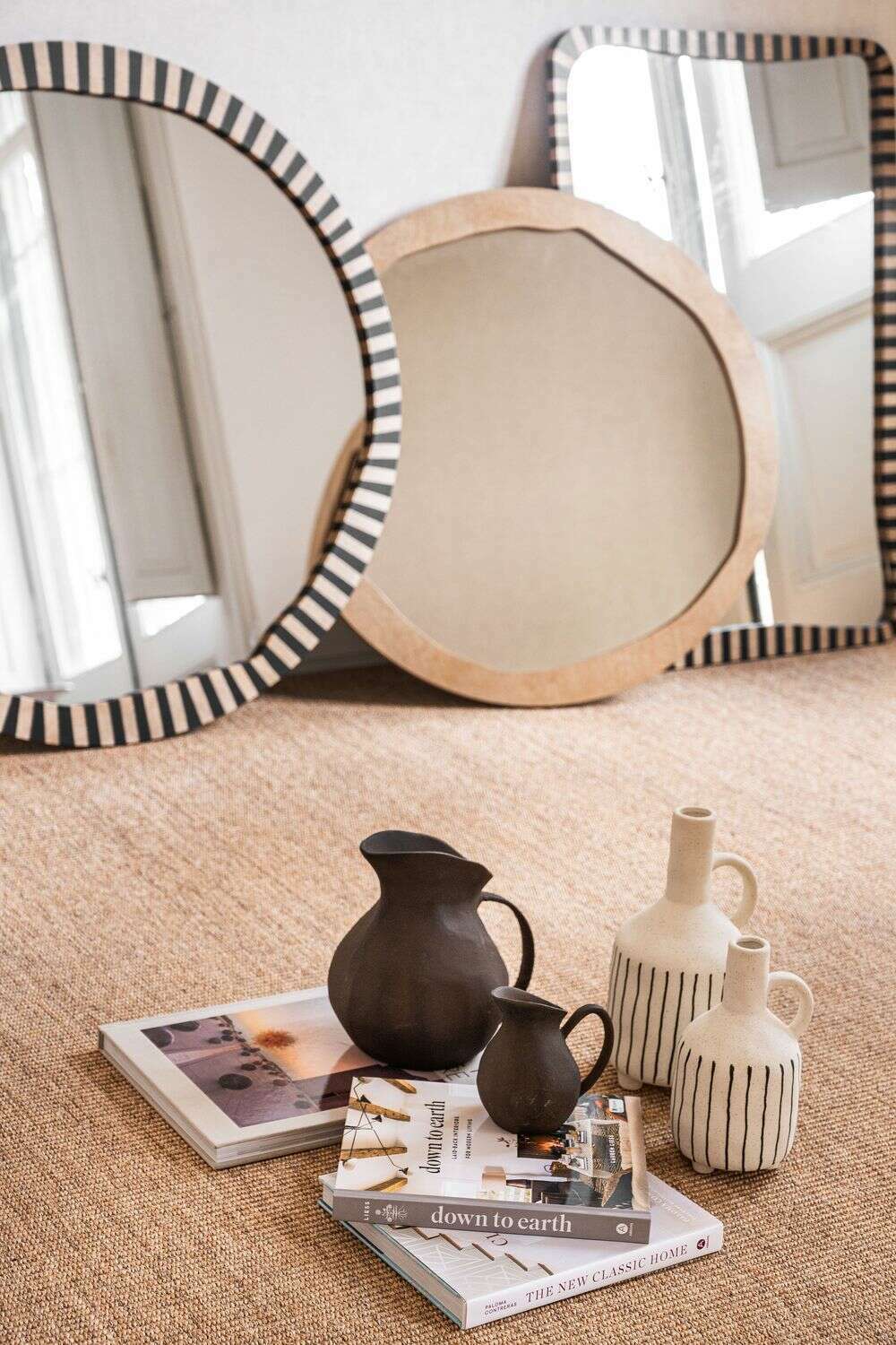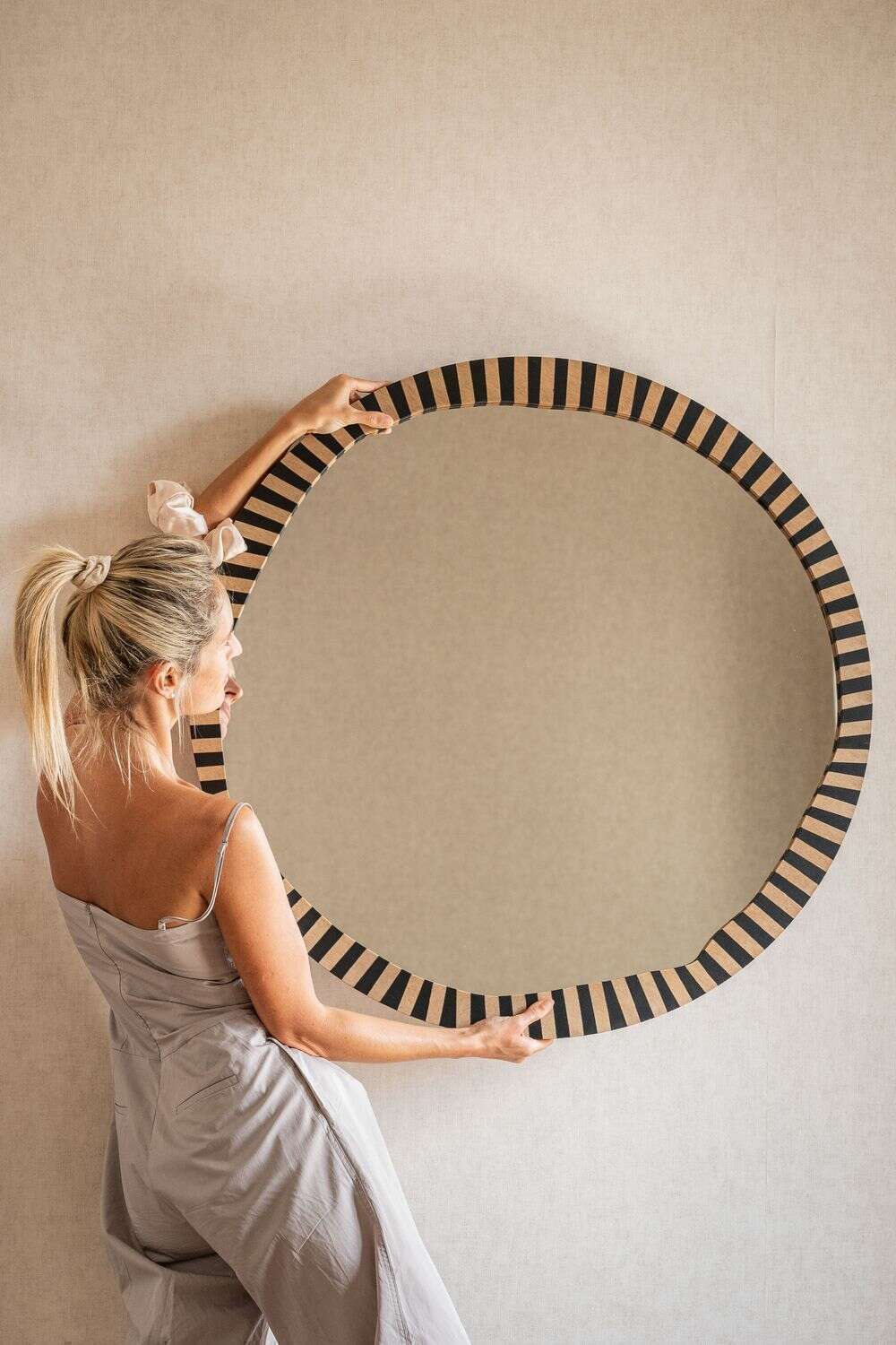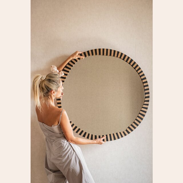 La colección de espejos Kenia con borde irregular y estampa a rayas es una pieza con personalidad y jugada para levantar espacios con una base neutra, o incluso dar más power a una decoración maximalista.