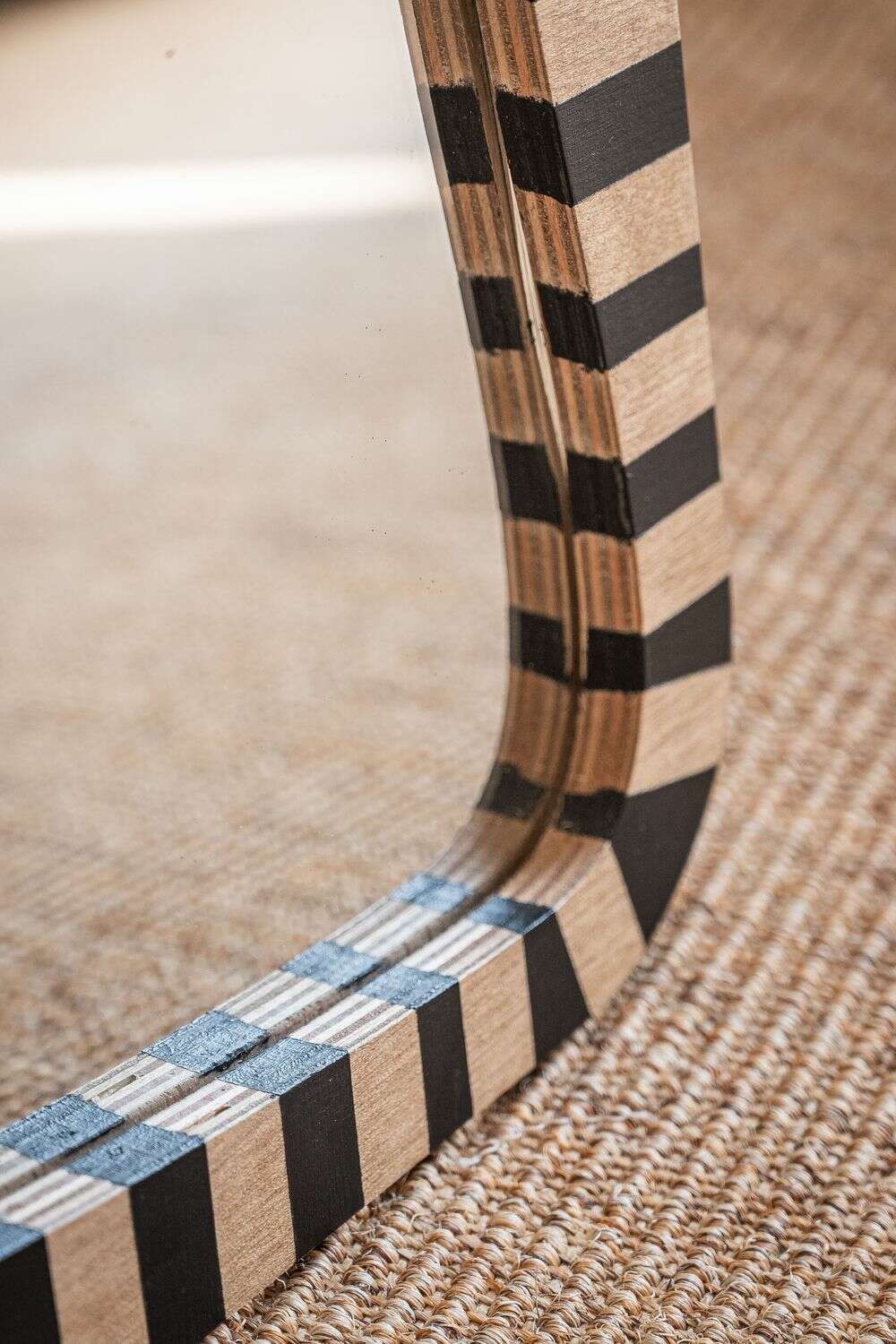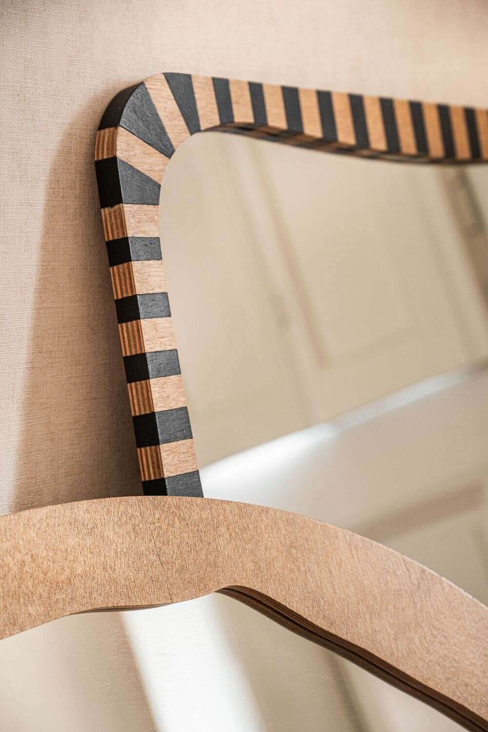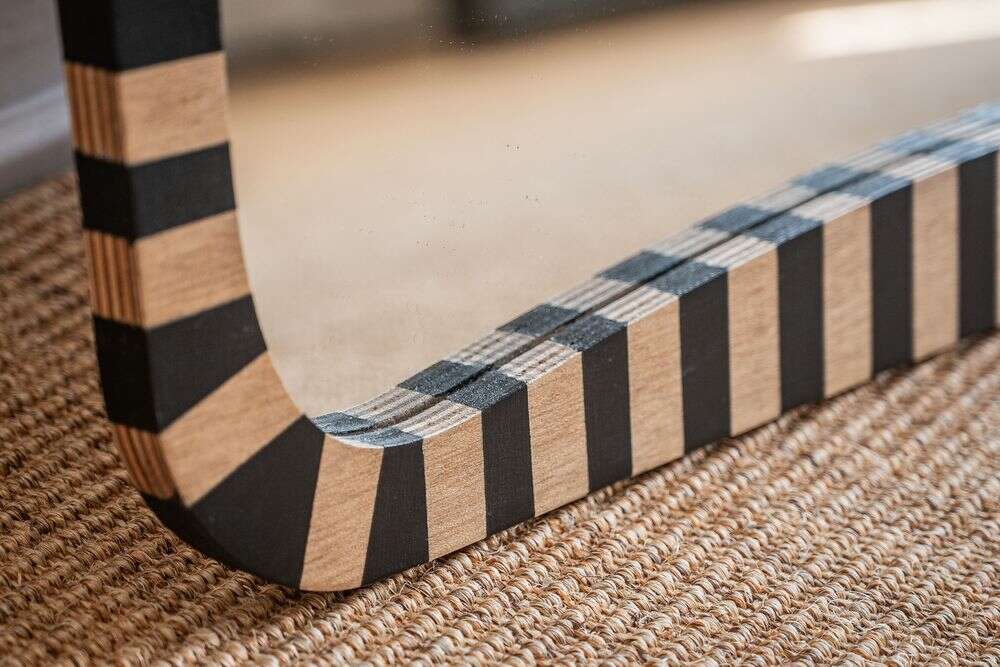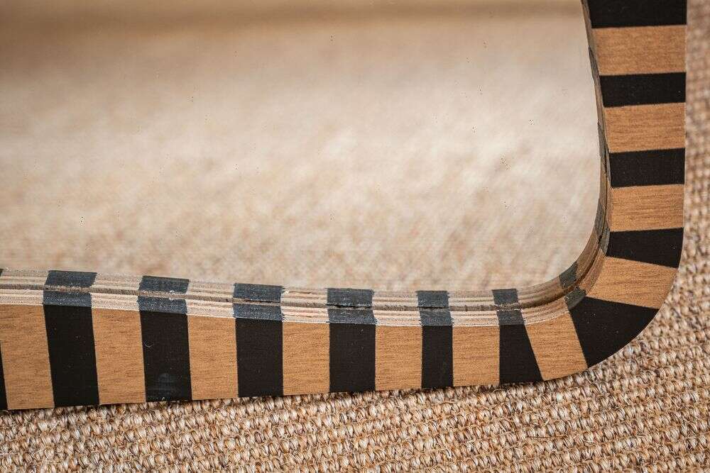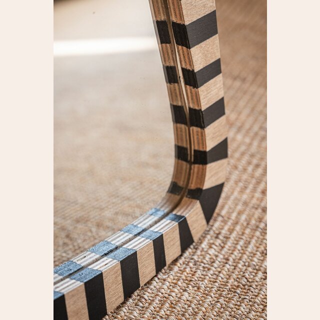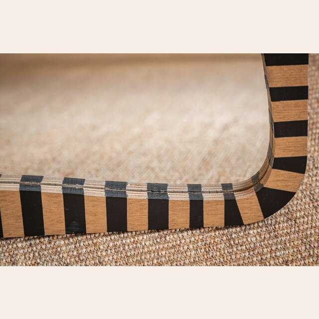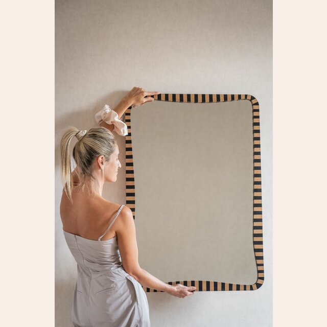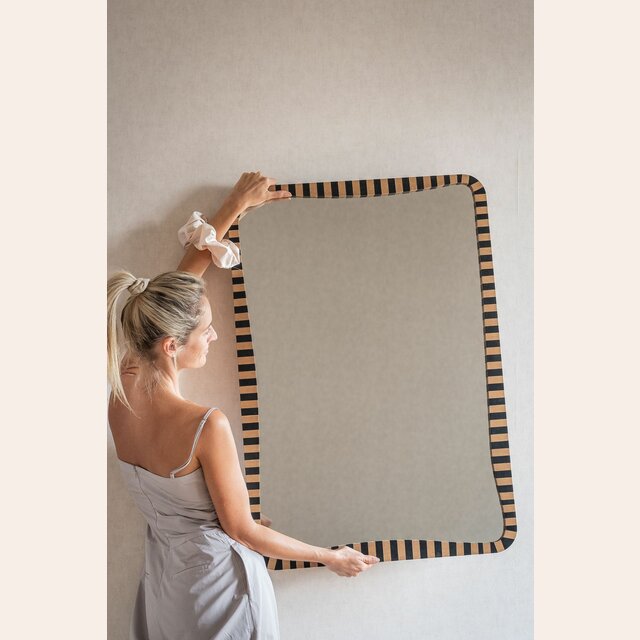 La colección de espejos Kenia con borde irregular y estampa a rayas es una pieza con personalidad y jugada para levantar espacios con una base neutra, o incluso dar más power a una decoración maximalista.