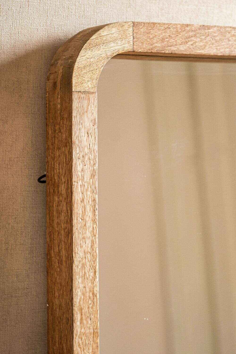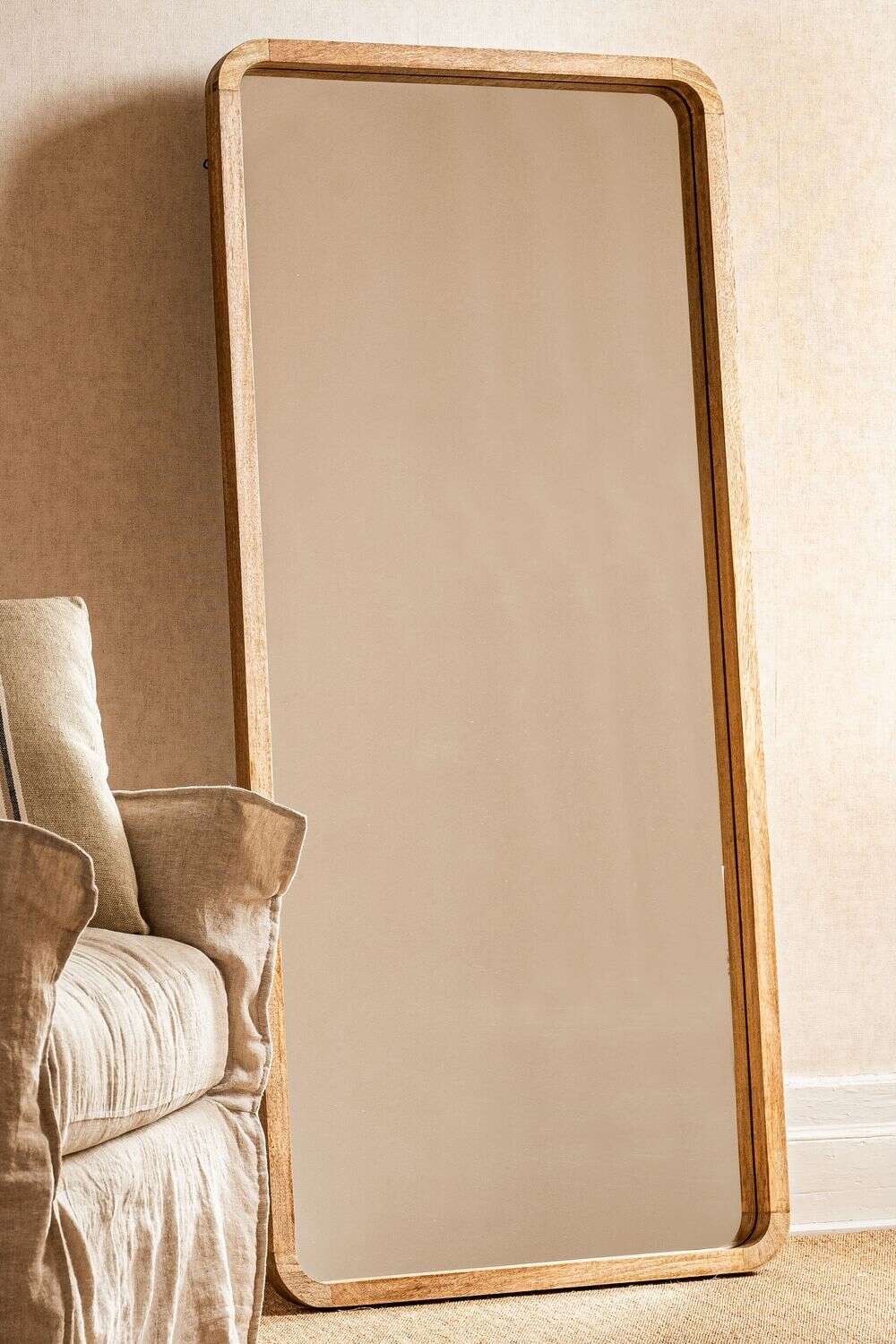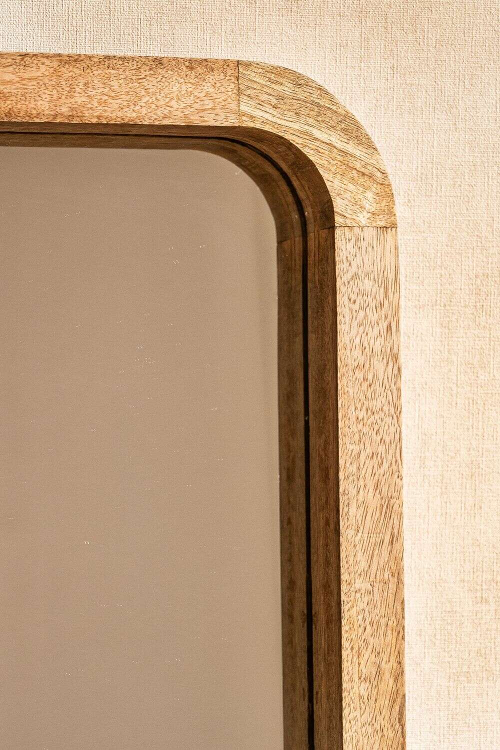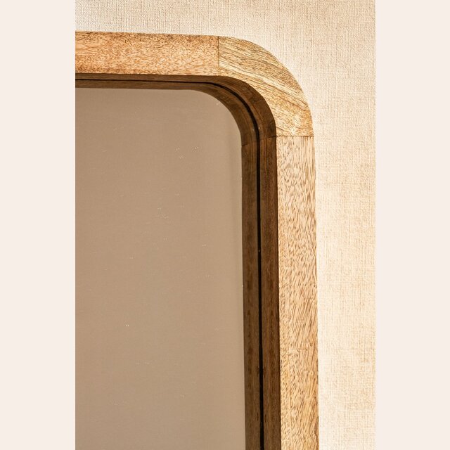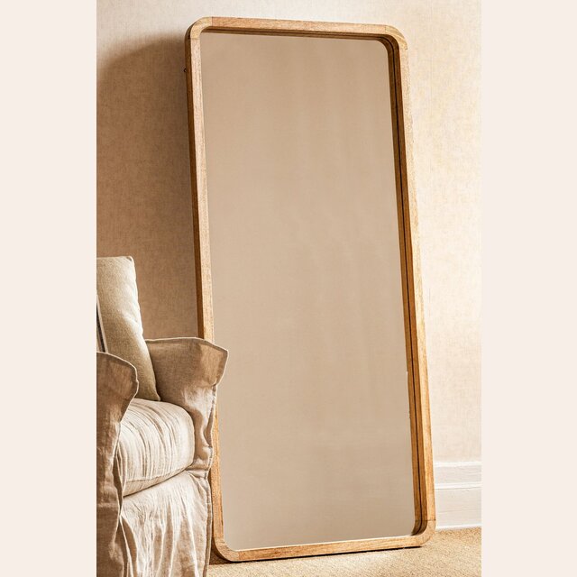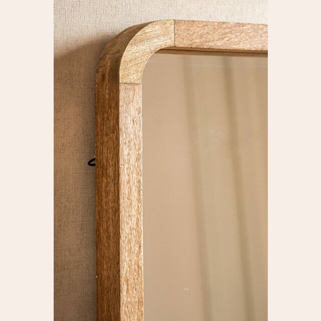 Divino espejo de cuerpo entero con puntas redondeadas en madera de mango.