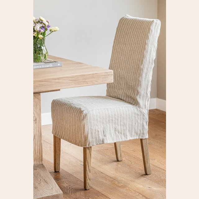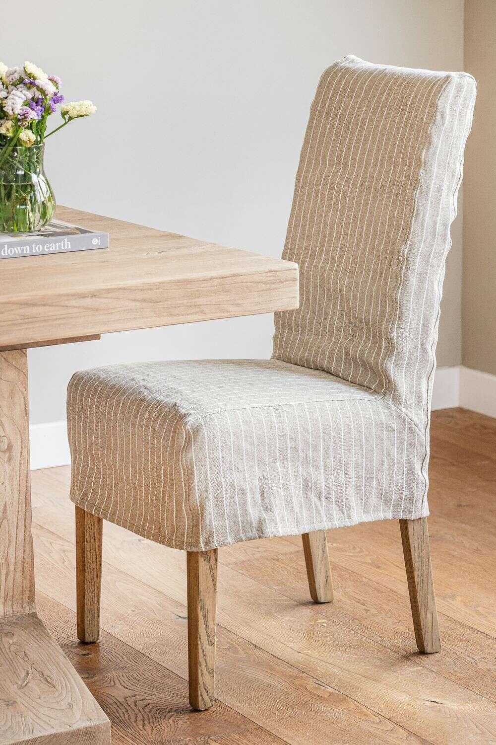 FUNDA SILLA AÑO 50 - 100% LINO ALTO GRAMAJE RAYADO BEIGE