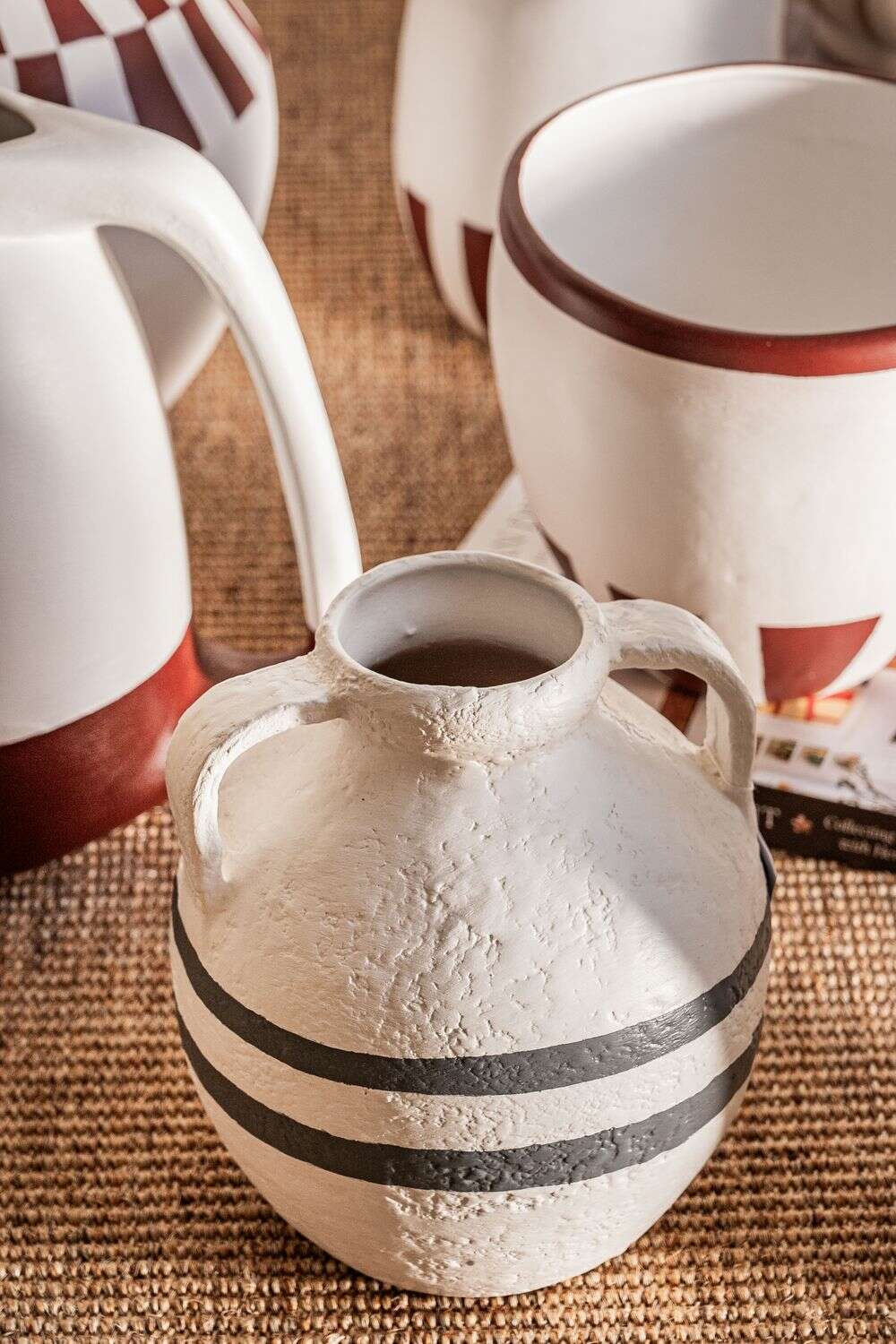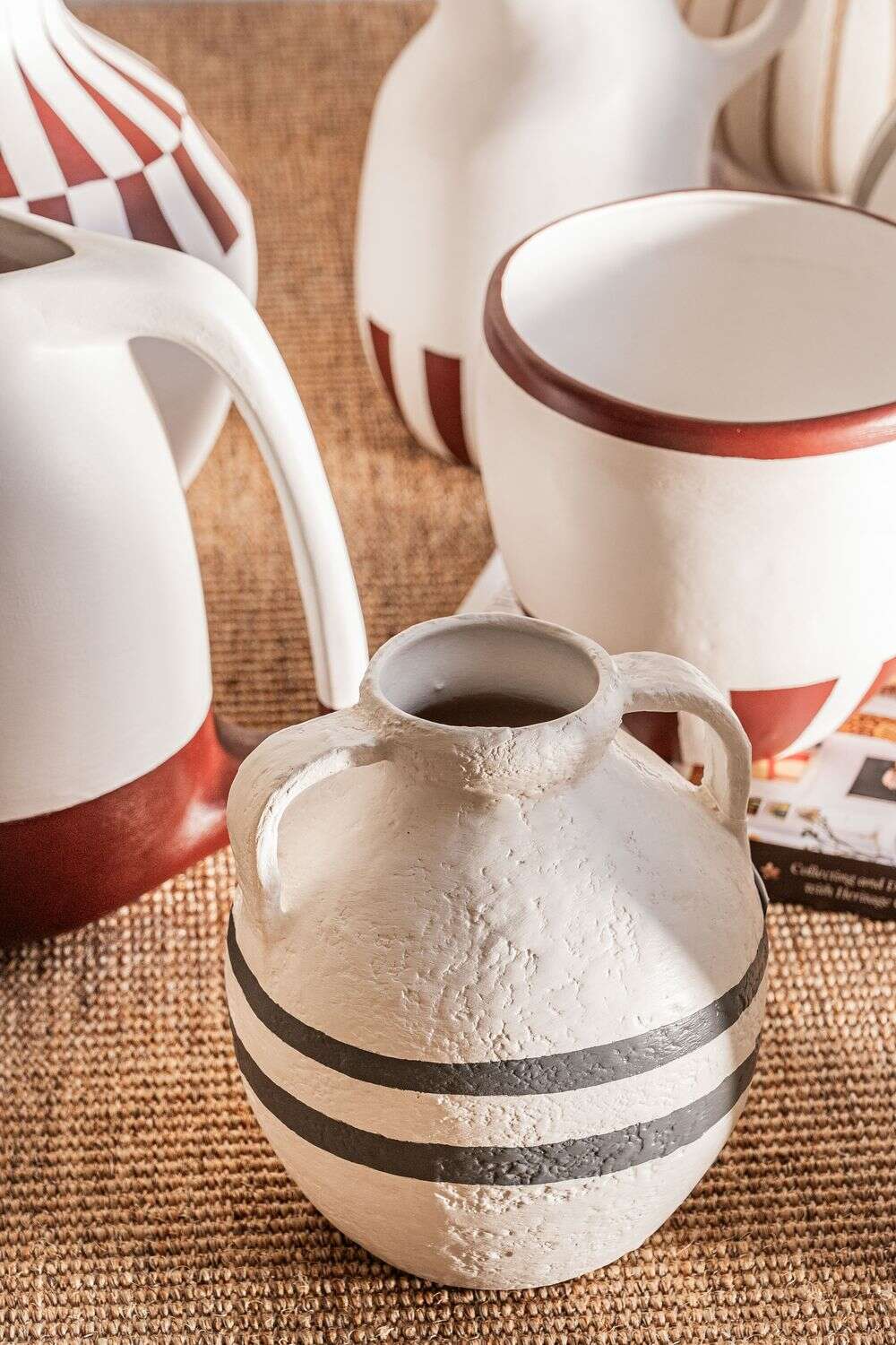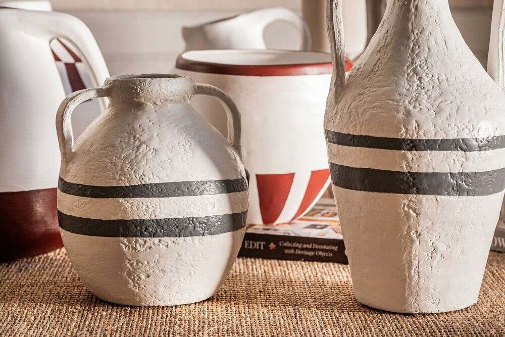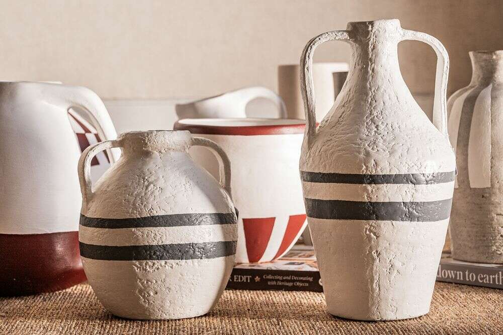 Colección de vasijas de cerámica pintadas a mano: piezas 100% artesanales fabricadas en Uruguay.