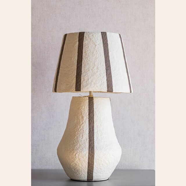 Un toque divertido de textura y estampa a rayas color chocolate en esta pieza de iluminación en papel maché.