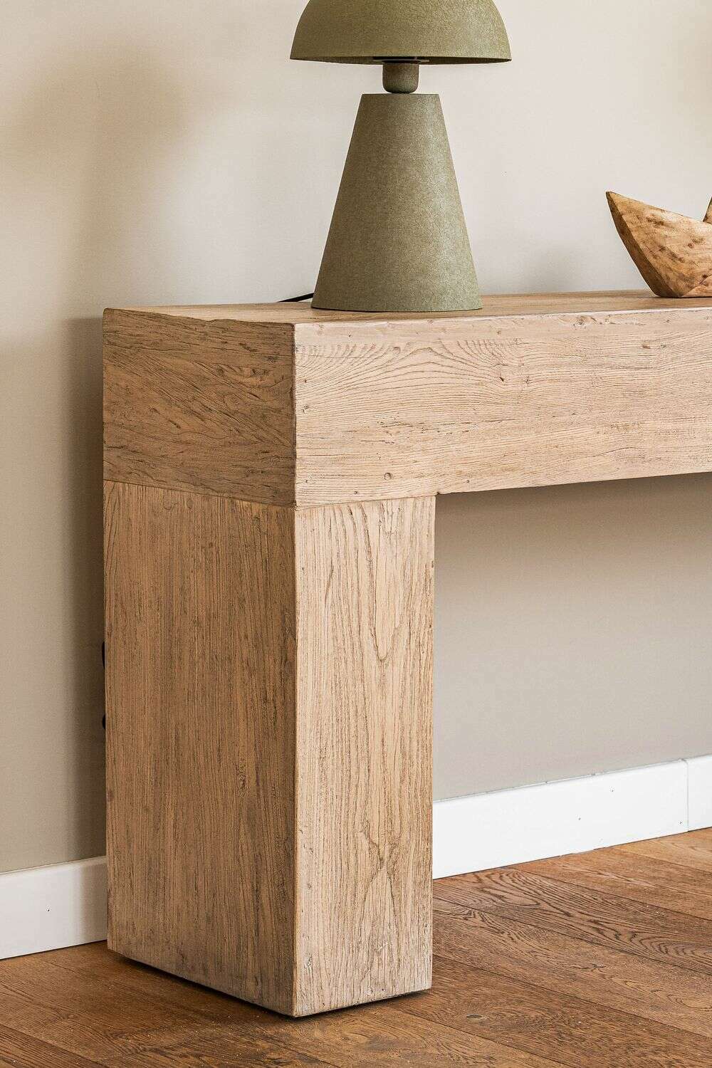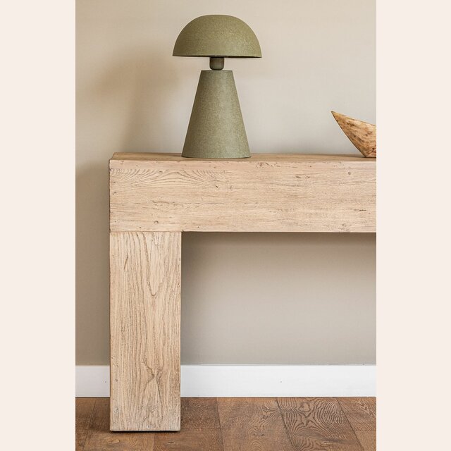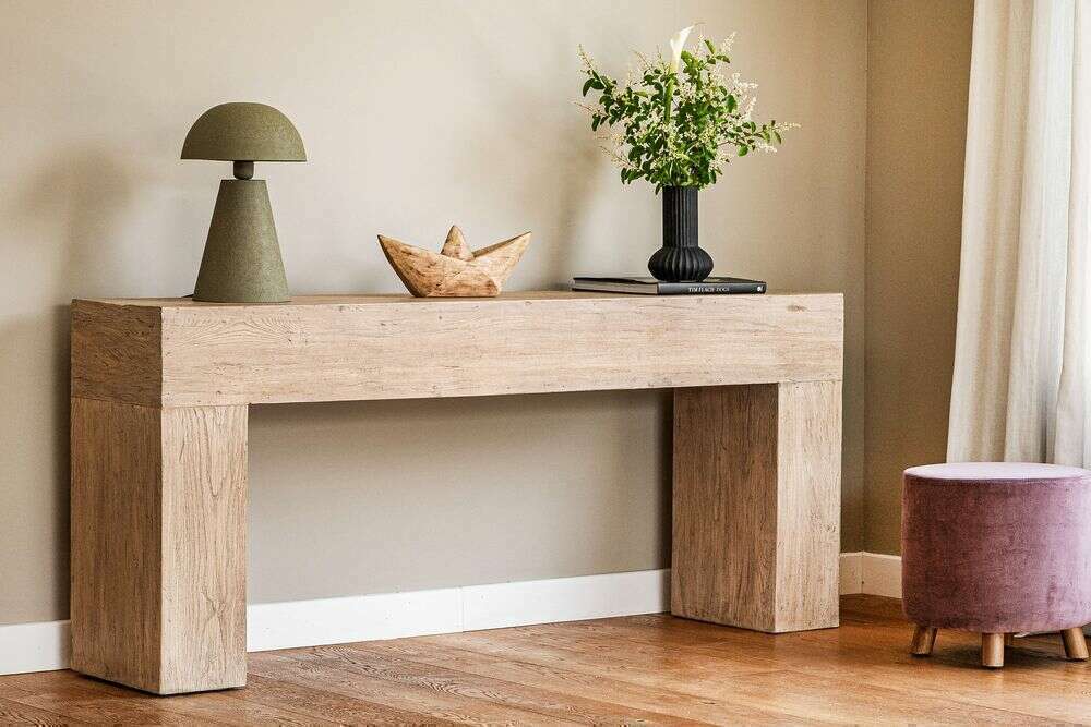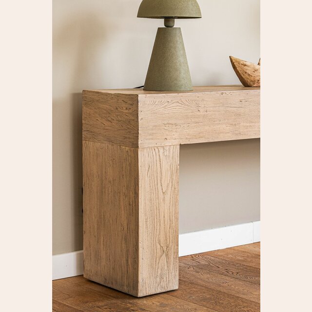 Impactante consola de olmo antiguo recuperado macizo en lustre natural, ideal para múltiples funciones: recibidor, detrás de sillón, hall de distribución, en espacios angostos...