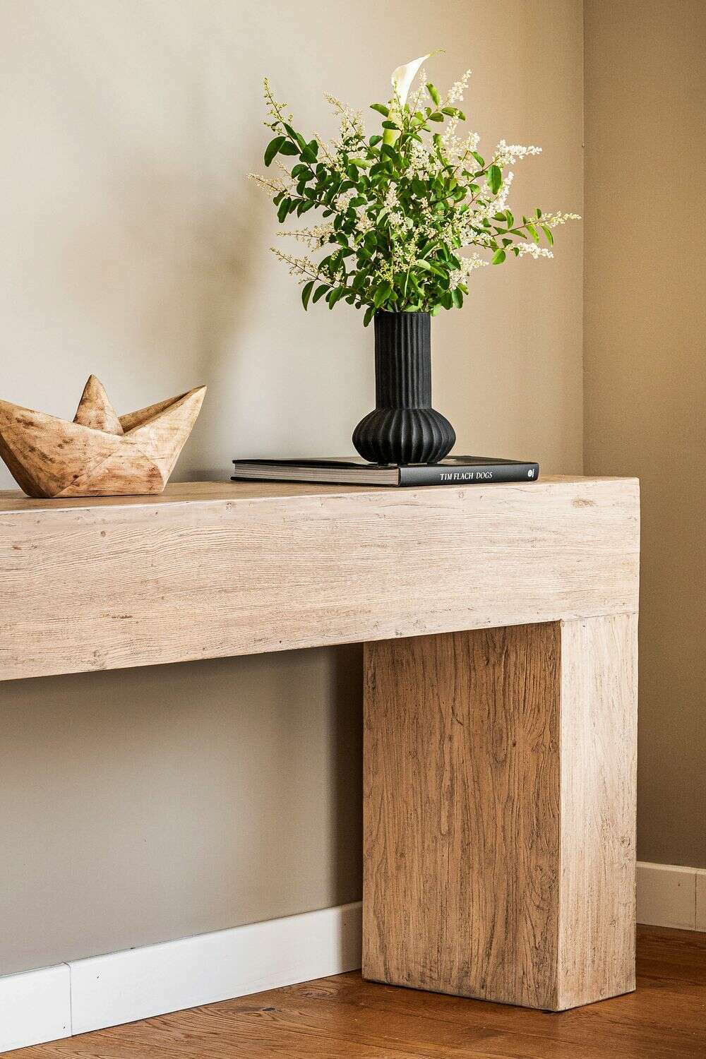 Pieza deco neutra y simple pero funcional y caracterizada por su belleza atemporal.