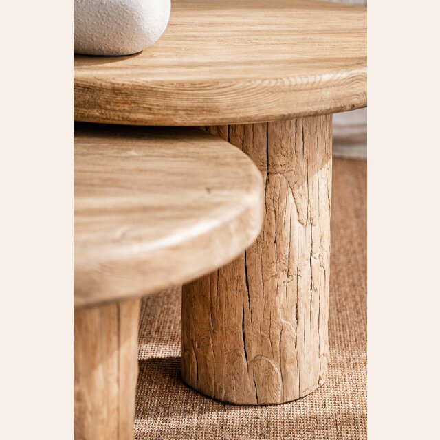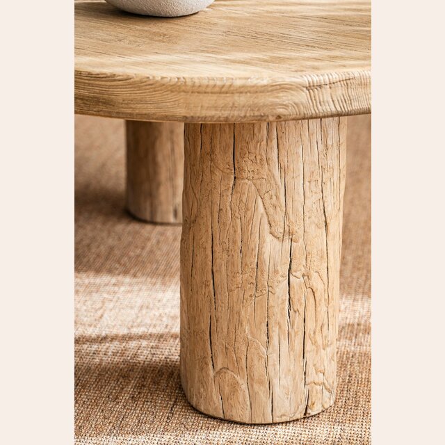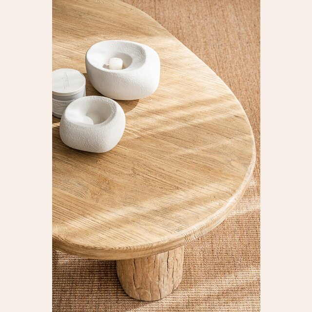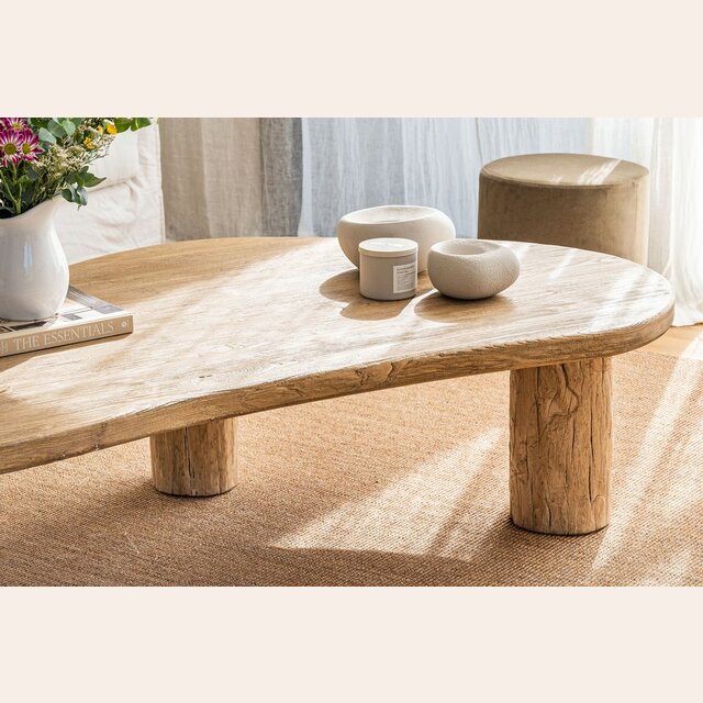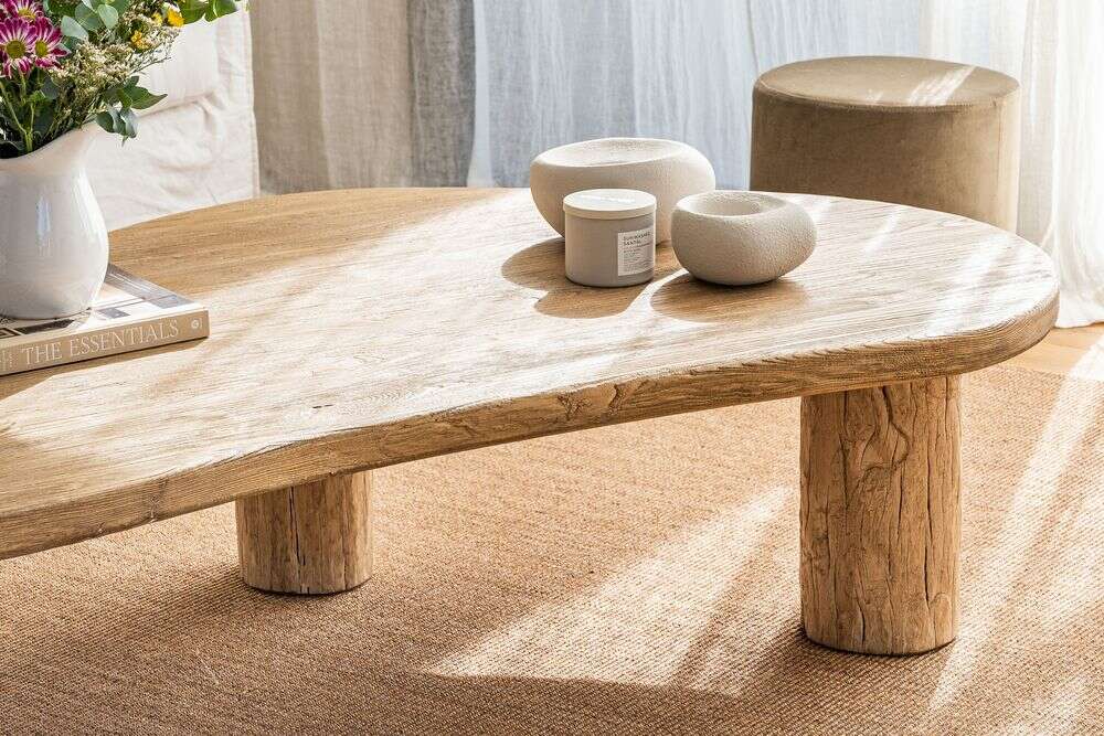 Mesa ratona de olmo antiguo en lustre natural con forma de ondas irregulares y bordes curvos.