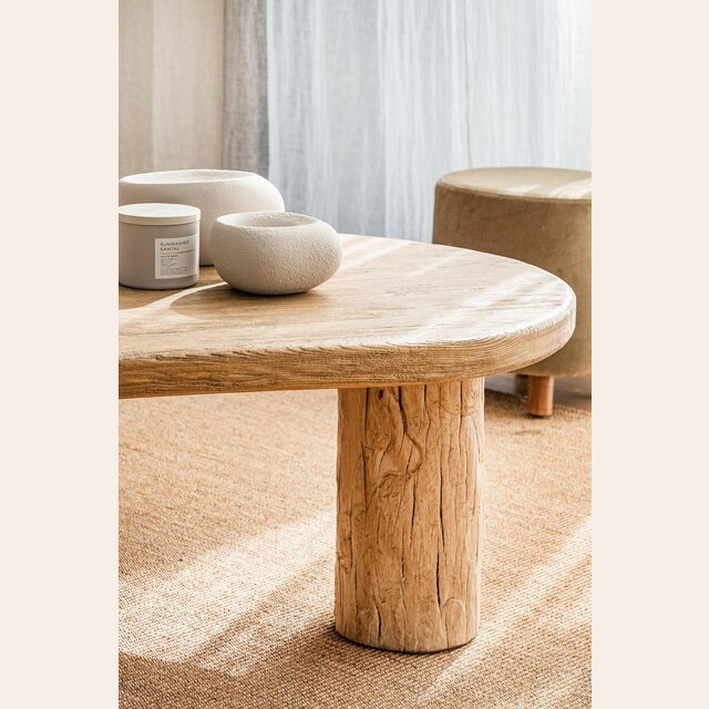 Nos encanta esta mesa para romper con las líneas rectas que suelen predominar en un espacio.