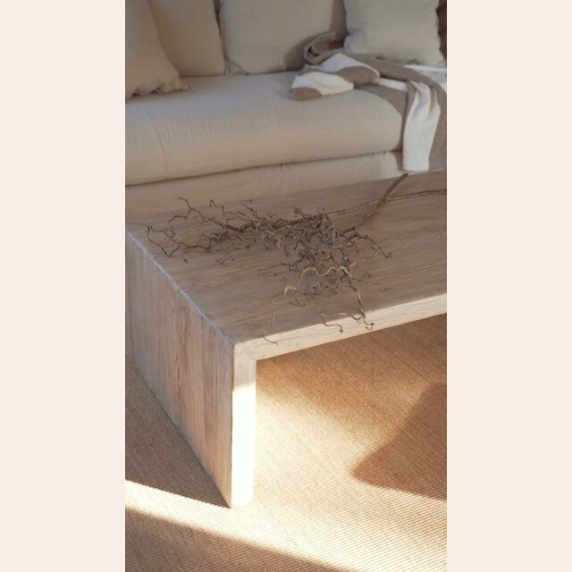 Una mesa fuerte y versátil en madera de olmo antiguo recuperado con terminación en suave lustre natural.