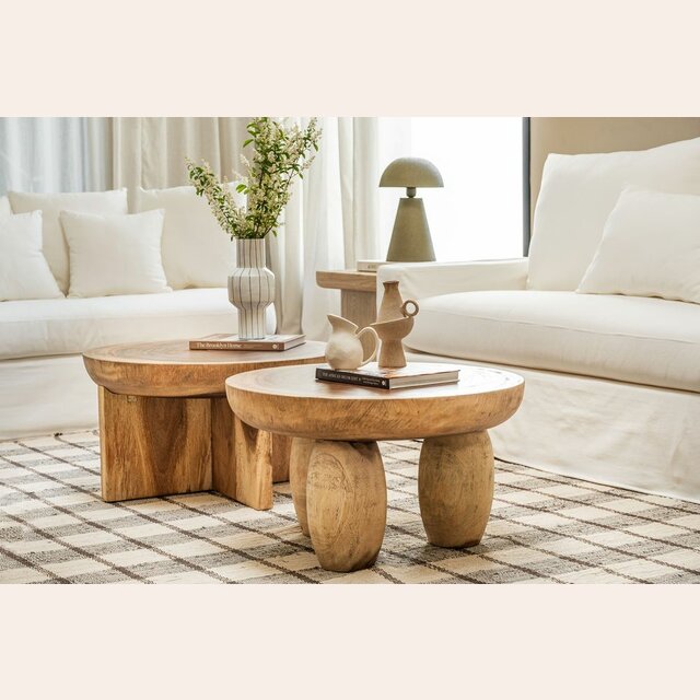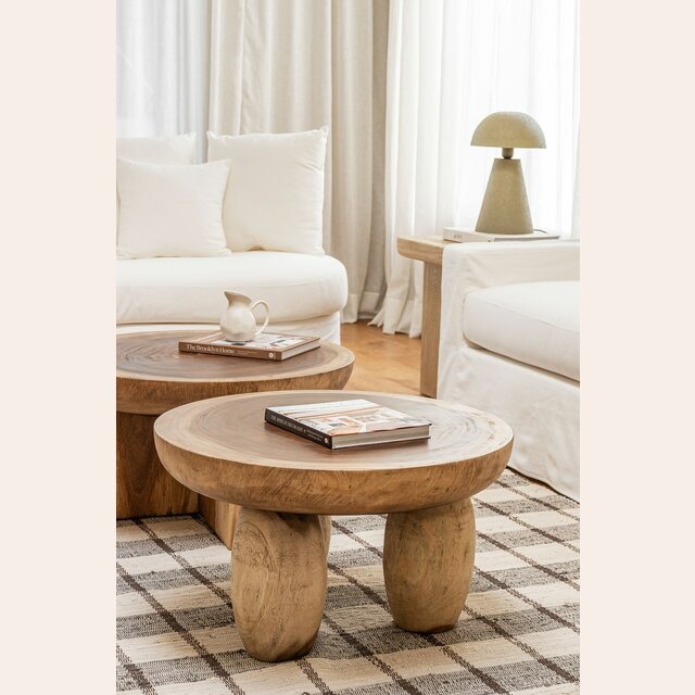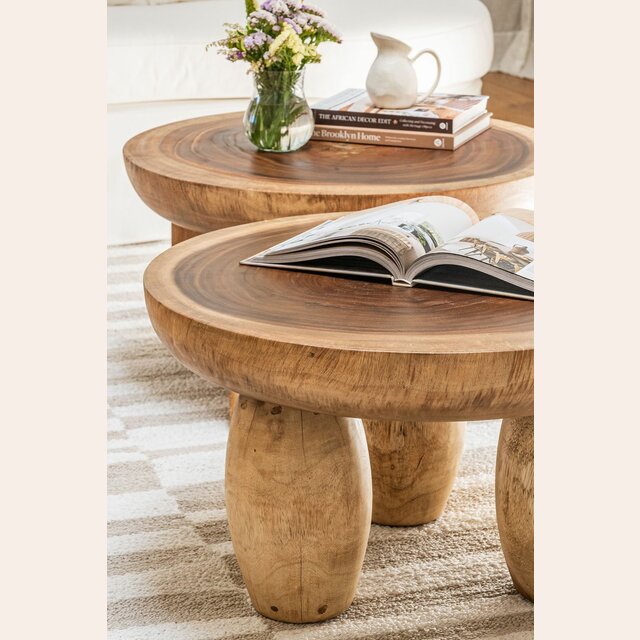 Mesa de centro en madera maciza de árbol de suar, lustre natural.