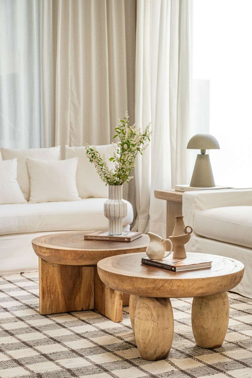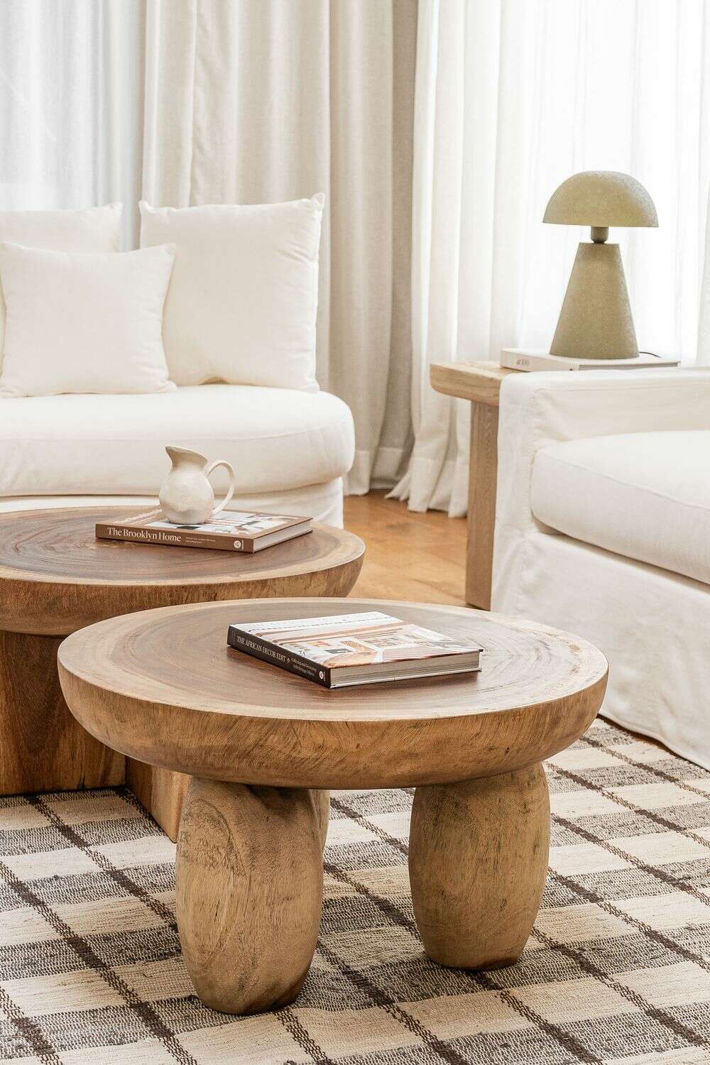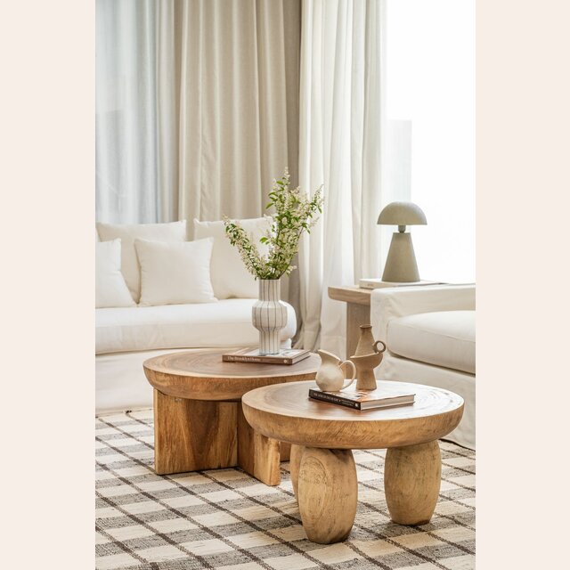 En espacios reducidos tiene una medida ideal para mesa de centro, favoreciendo la circulación y aportando calidez y suavidad.