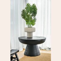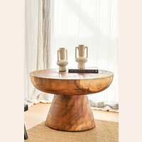 Versátil mesa de living contemporánea en álamo macizo con terminación raw y lustre natural.