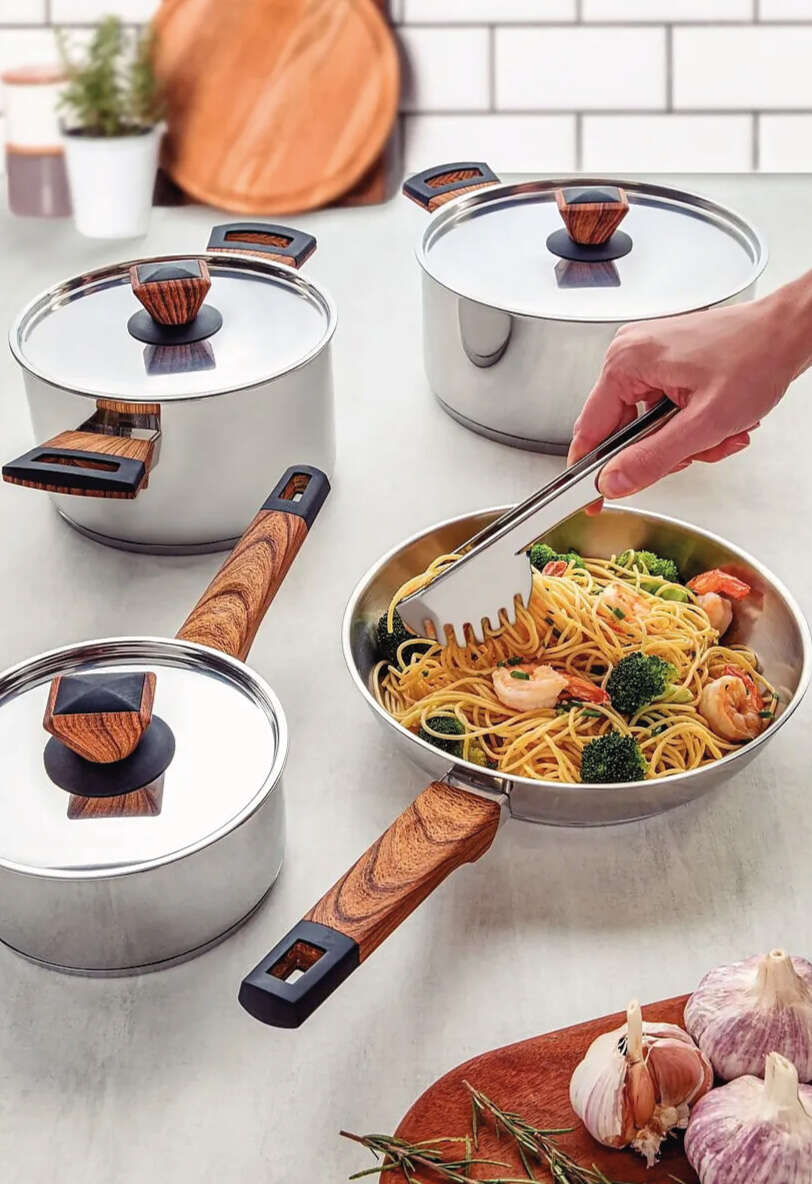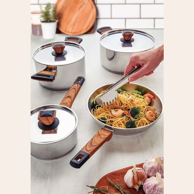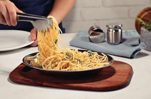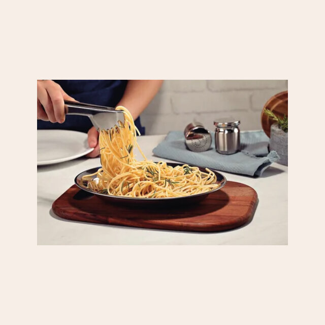 Pinza para spaghetti plana de acero inoxidable, marca Tescoma.