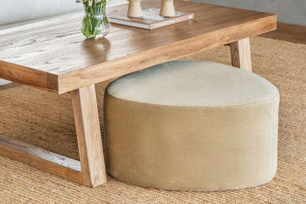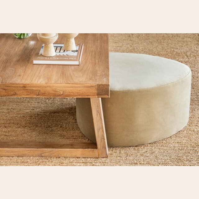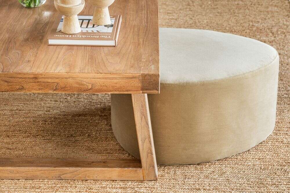 Amamos este puff ideal para dejar debajo de la mesa ratona, con forma irregular y terminaciones curvas, muy cómodo y práctico.
