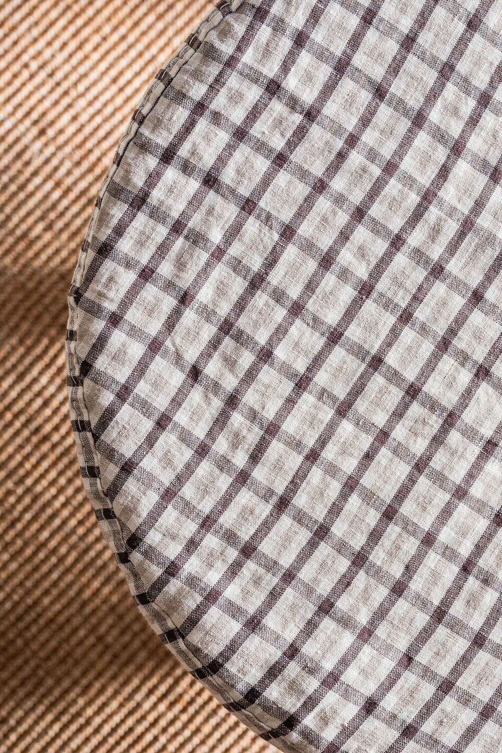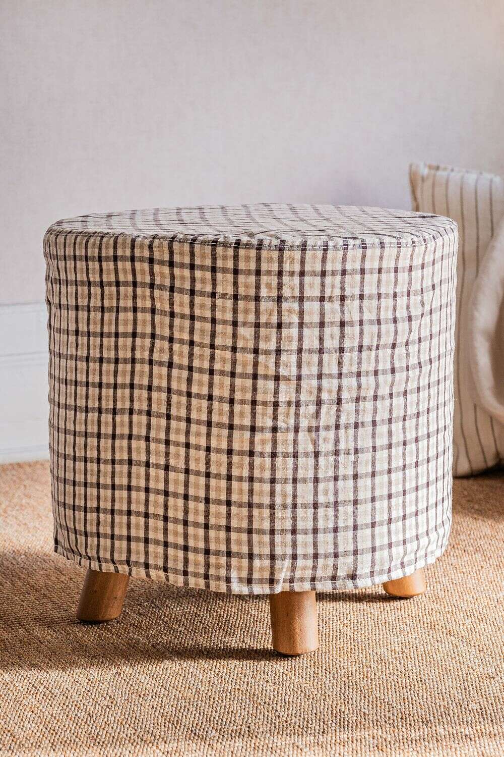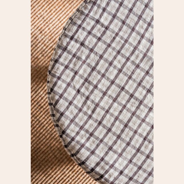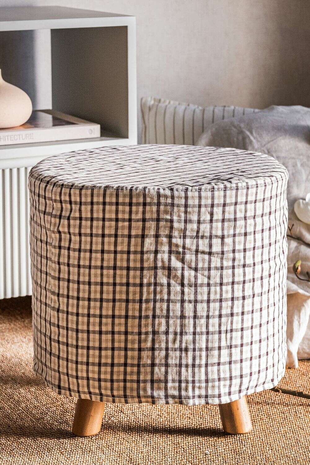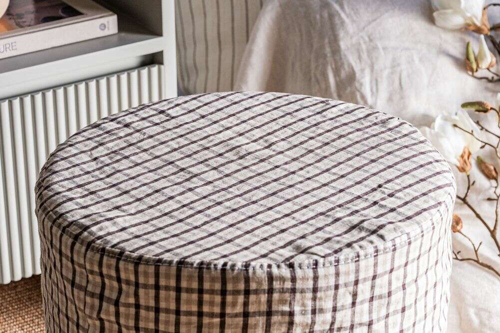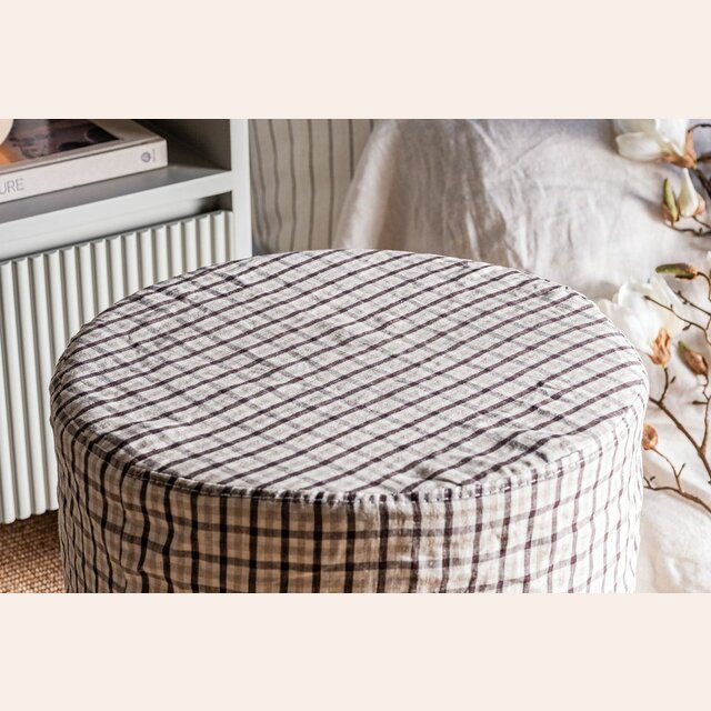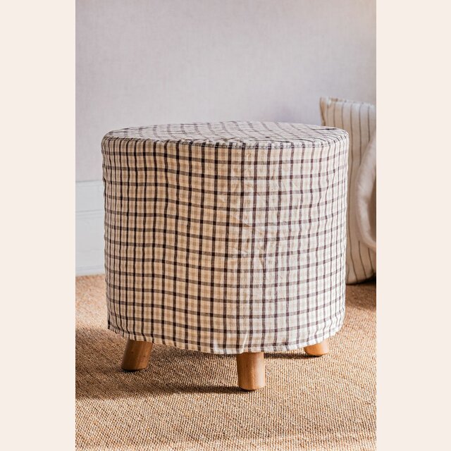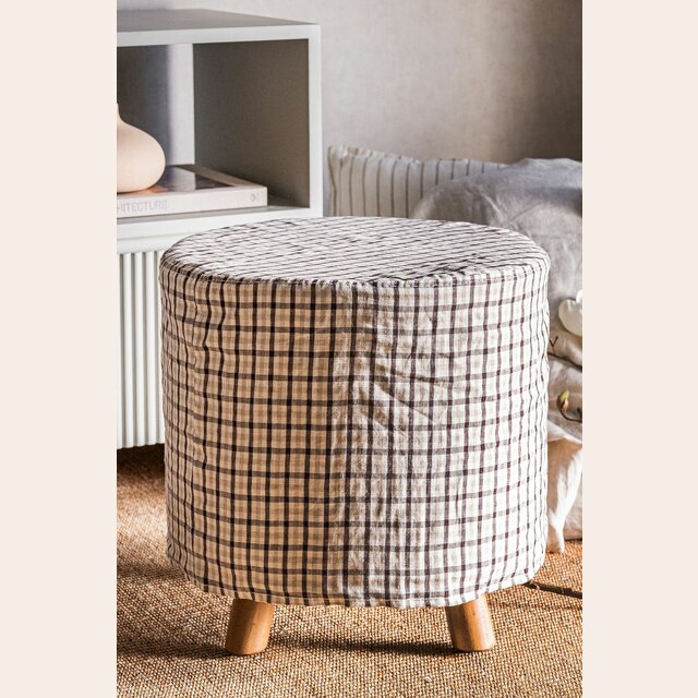 Comodín total y toque deco: puff Polly en versión con funda desmontable en lino alto gramaje estampado a cuadros.