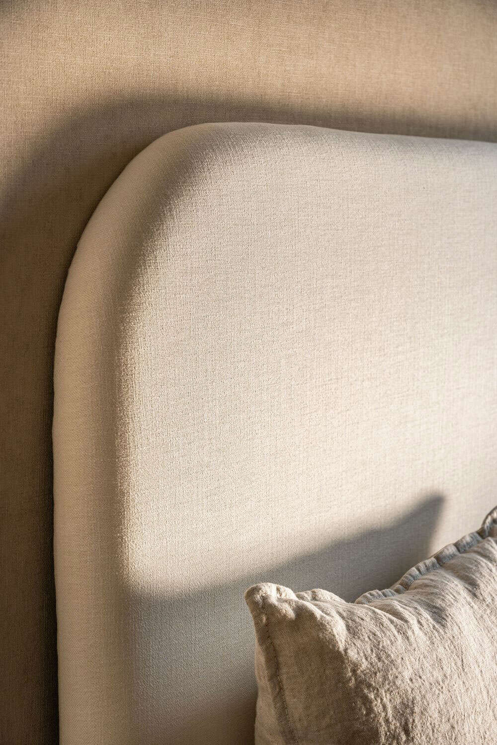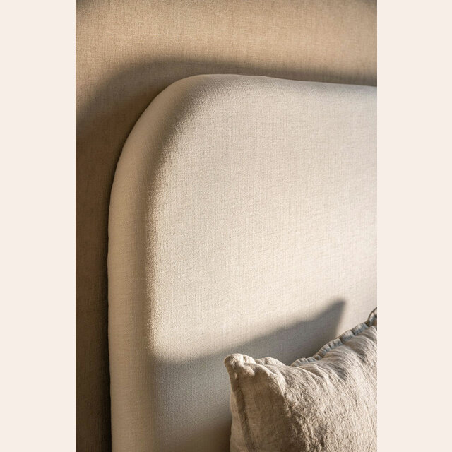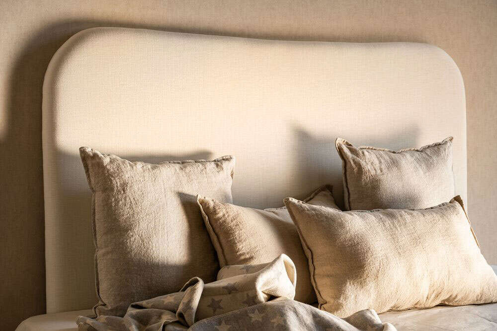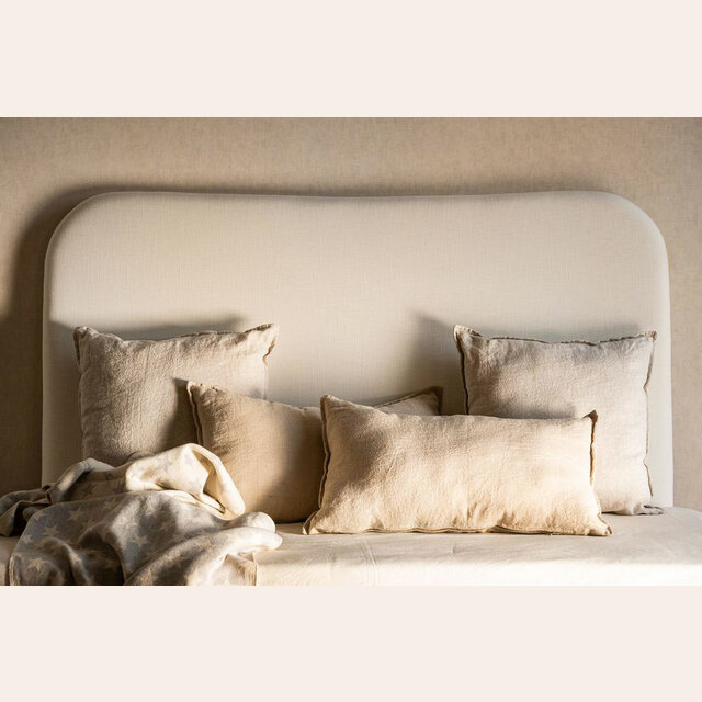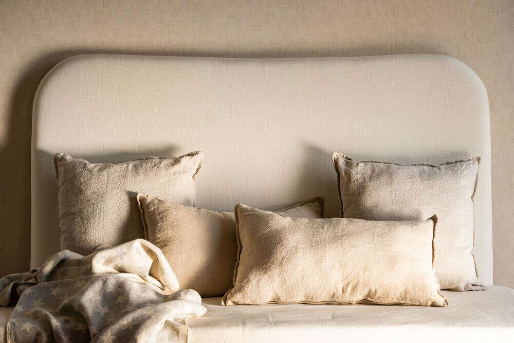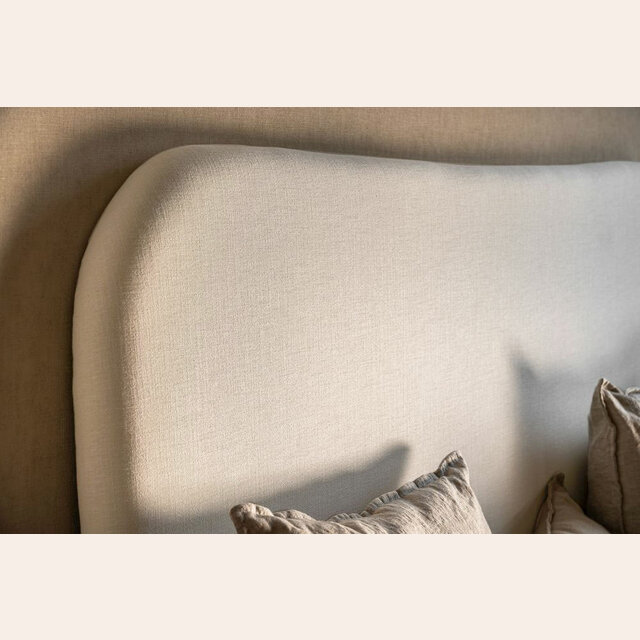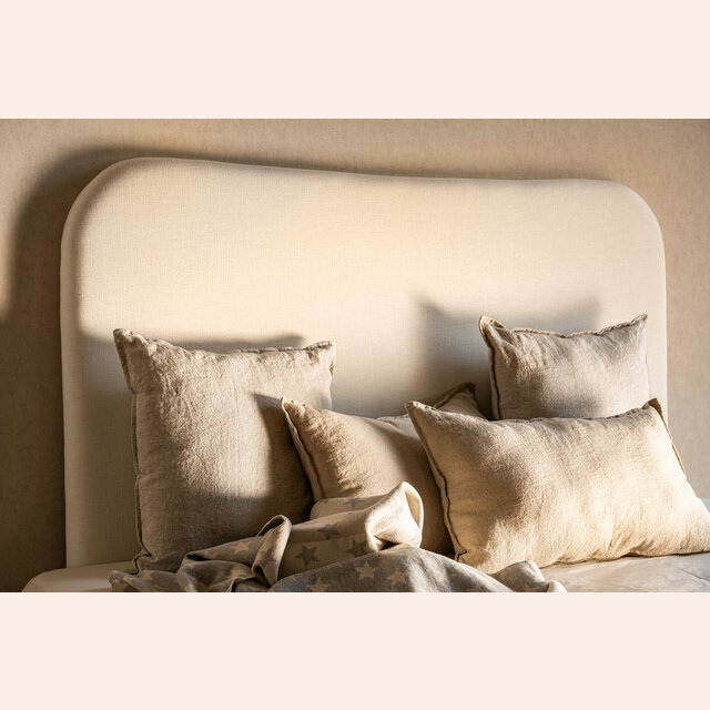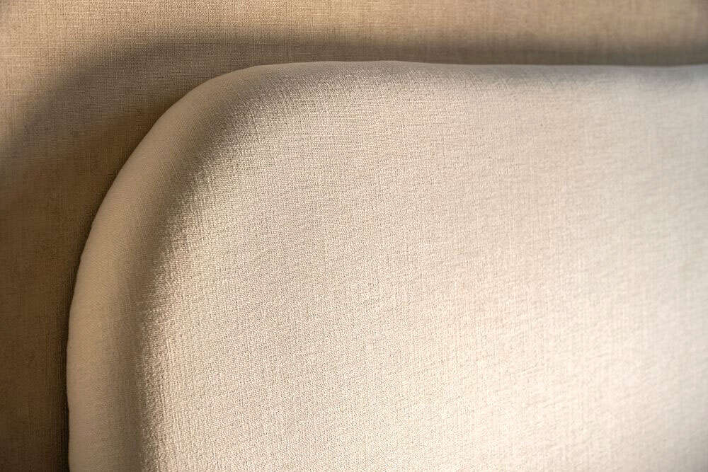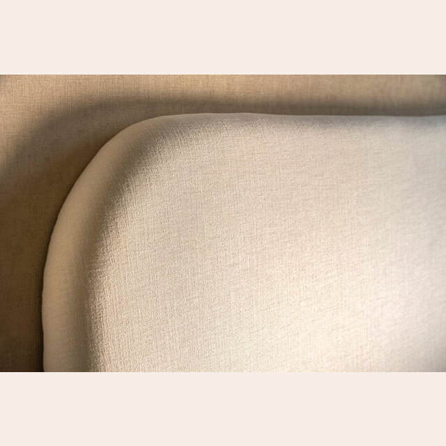 Divino respaldo de líneas curvas tapizado en lino belga con tecnología antimanchas color off-white.