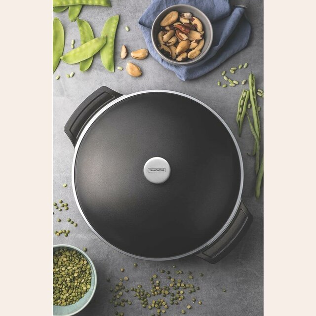 La línea Lyon de Tramontina es mucho más que ollas: están pensadas como una olla-horno. Fabricadas en aluminio forjado con revestimiento antiadherente Starflon, exclusivo de Tramontina, garantizan mayor seguridad, ya que son libres de PFOA, más resistentes y saludables que el teflón tradicional. Gracias a esta tecnología podés cocinar con menos aceite, conservando mejor las propiedades de los alimentos.