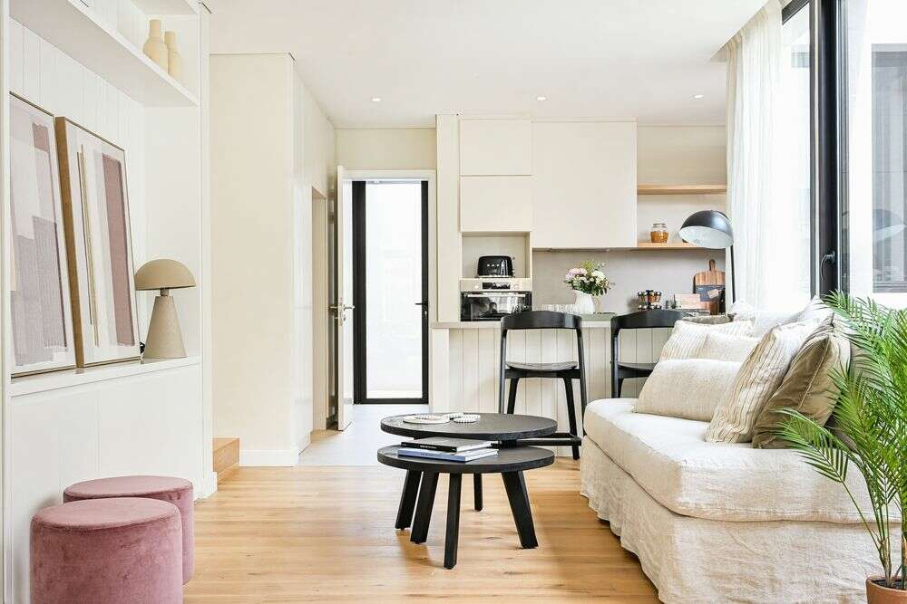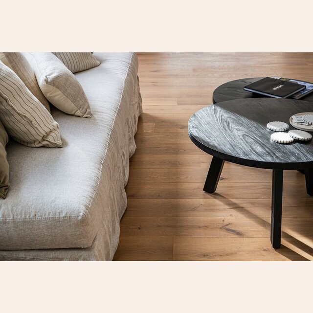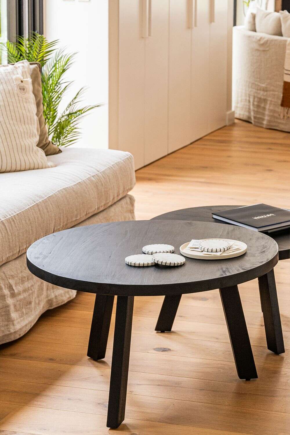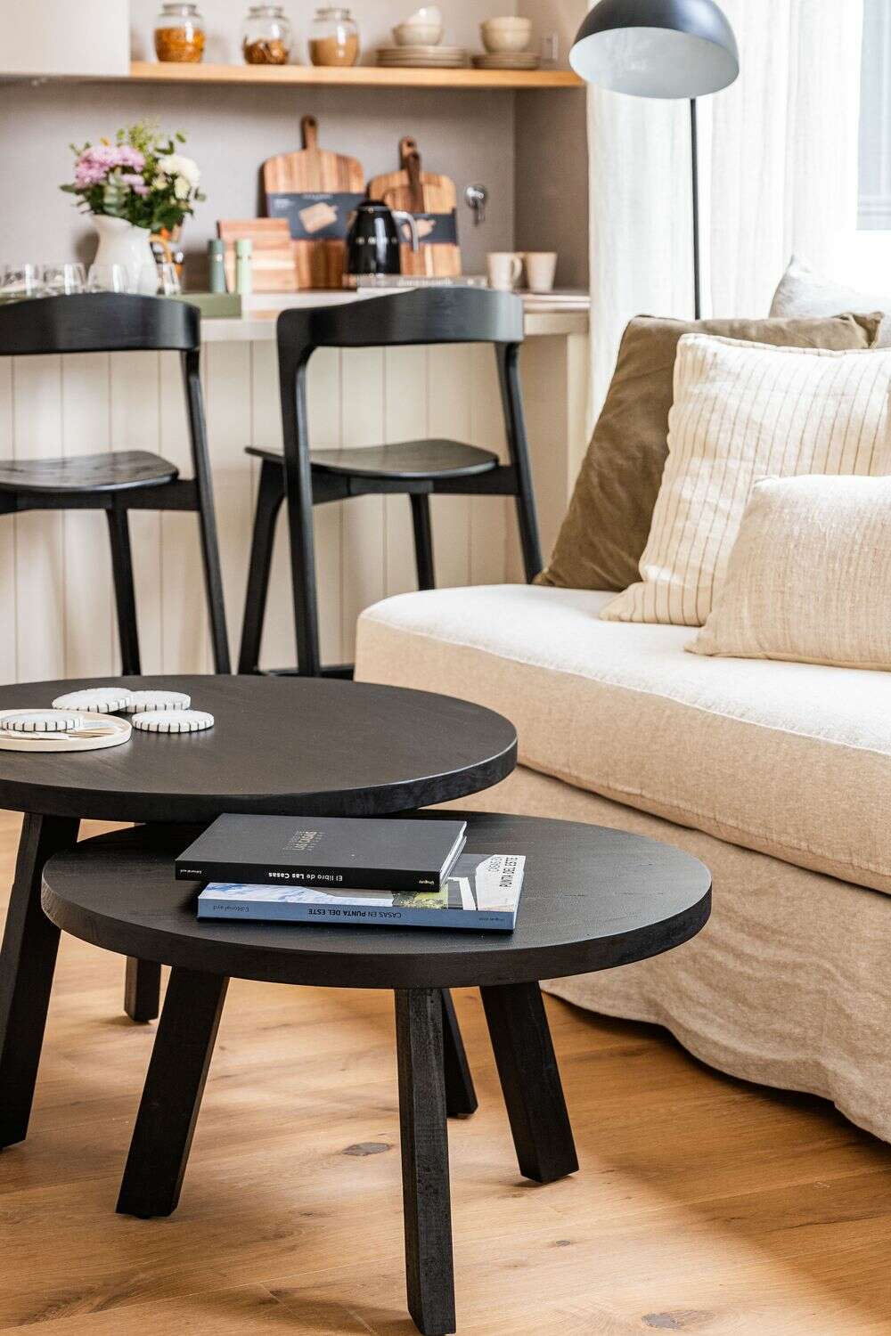 Set de 2 mesas nido de álamo macizo lustre negro ideales para espacios reducidos y fáciles de mover para múltiples funciones.