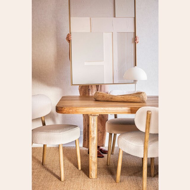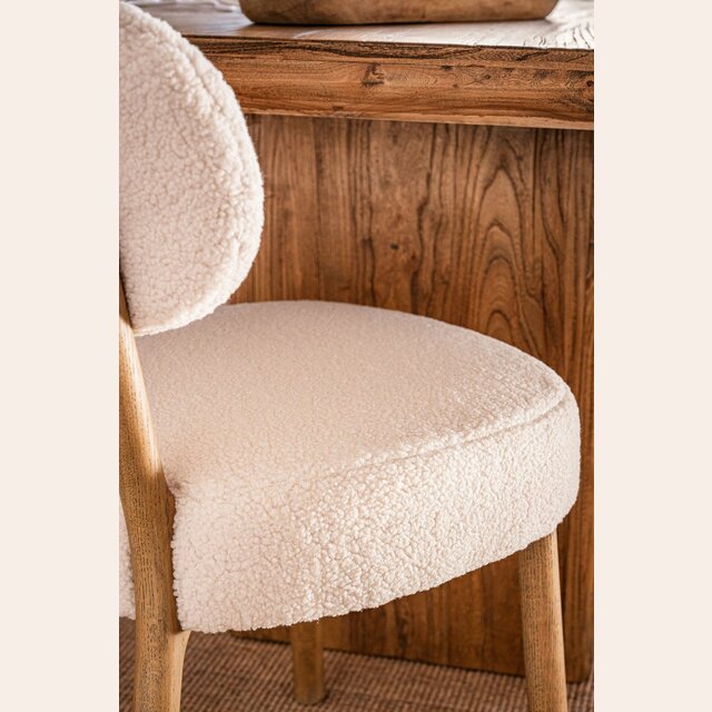 Cómoda silla de fresno macizo curvo y asiento de corderito sintético.