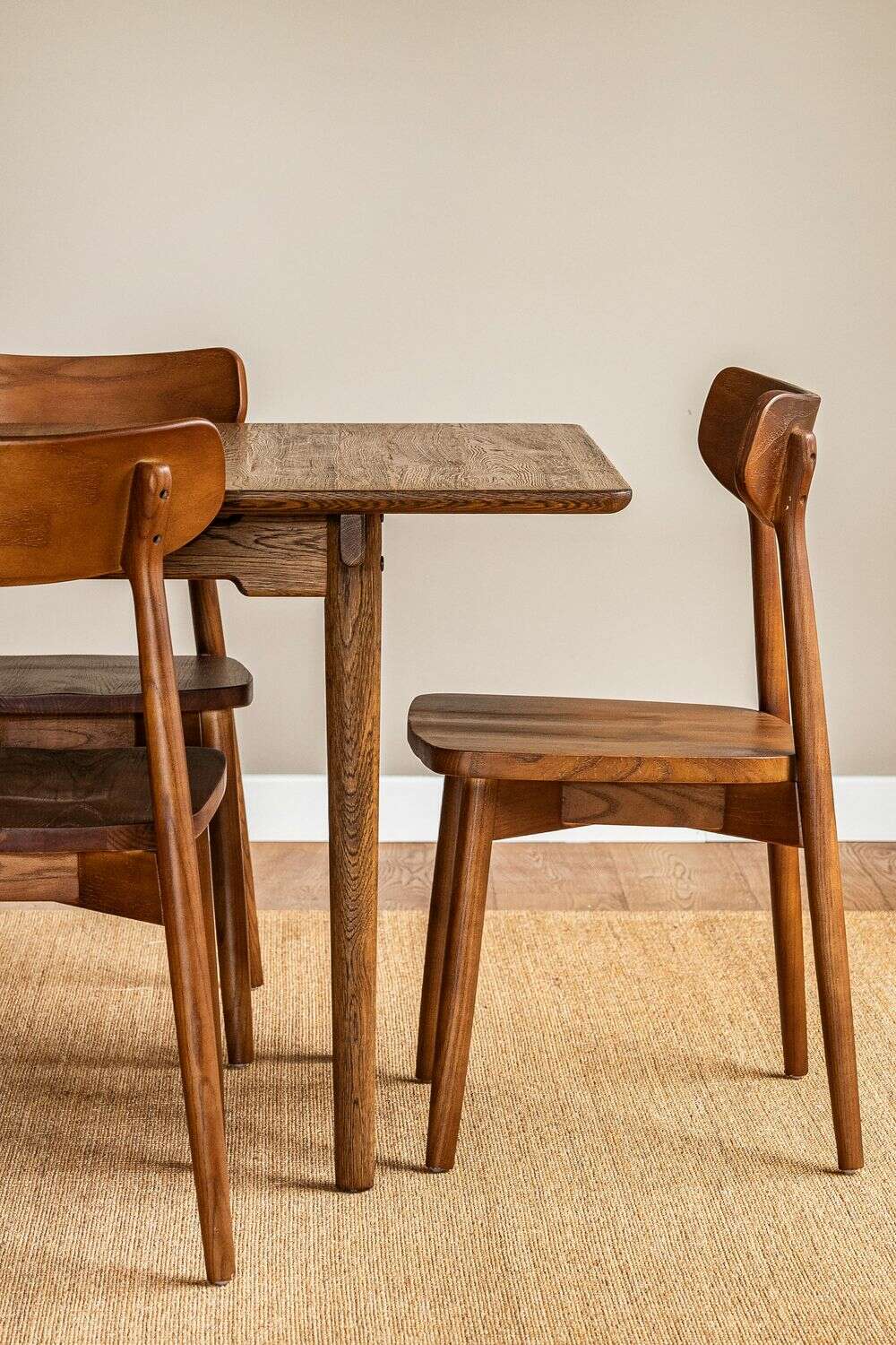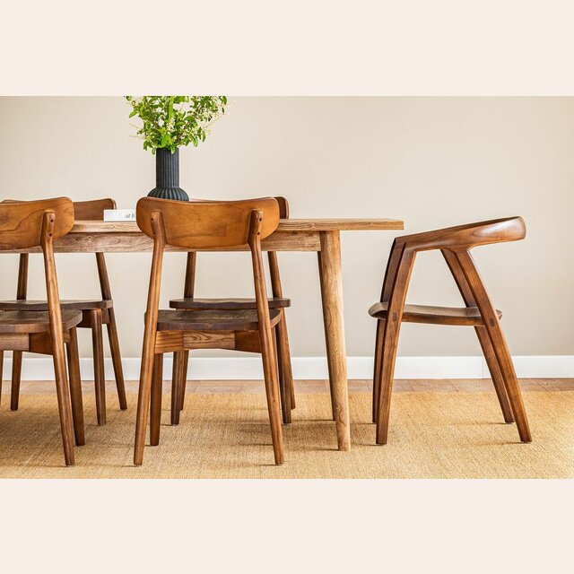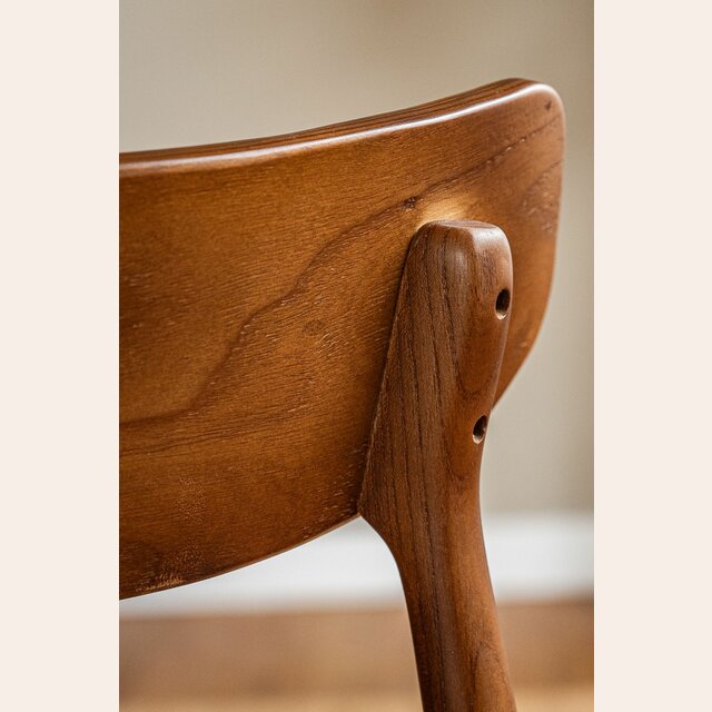 Asiento ergonómico y diseño minimalista en madera maciza de olmo en lustre avellana.