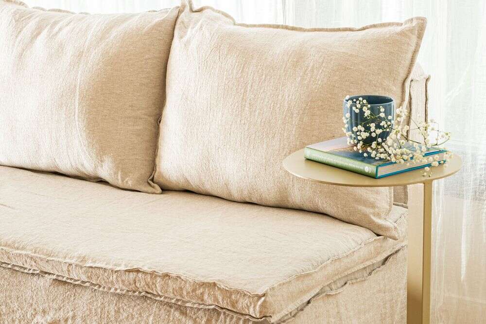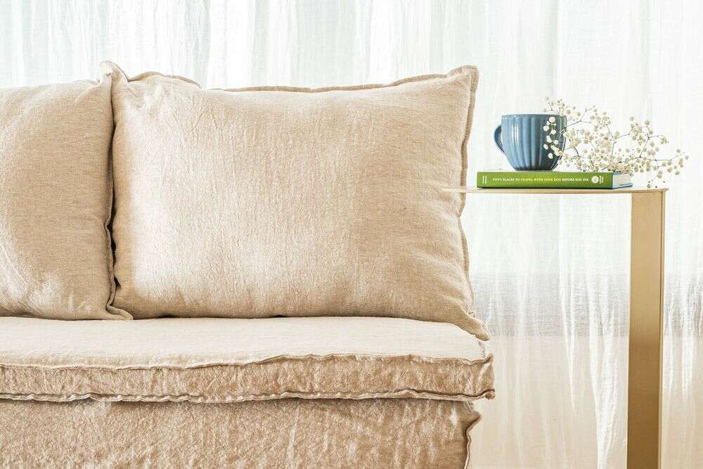 Fundas desmontables para lavar, lino 100% natural. Lavar en lavarropas con agua fría.