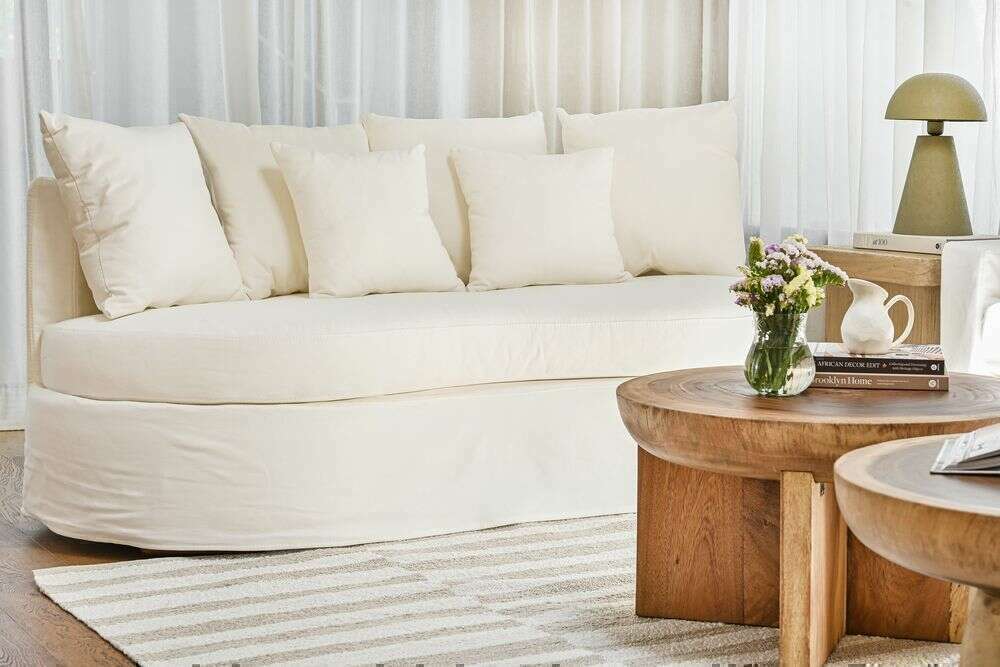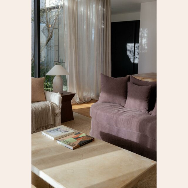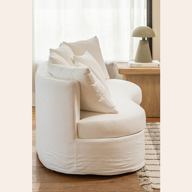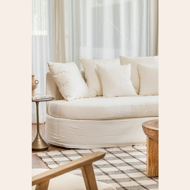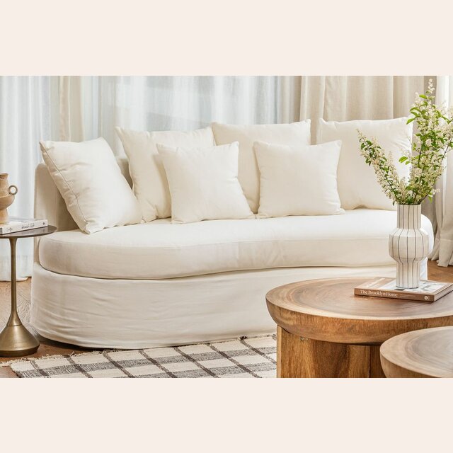 Formas orgánicas y en diseño con fundas 100% desmontables para lavar en lavarropas, en tela jean, resistente y versátil.