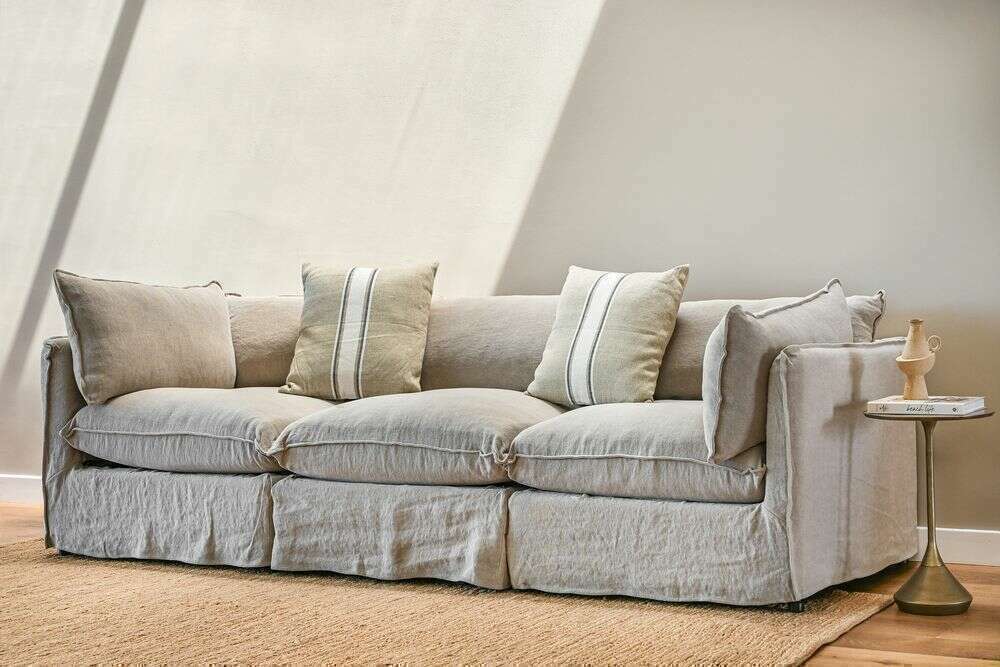 Gran sillón de 3 cuerpos con diseño en 3 piezas individuales - unidas debajo con enganche que impide que se separen.