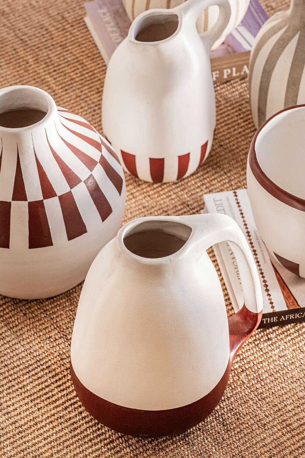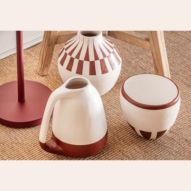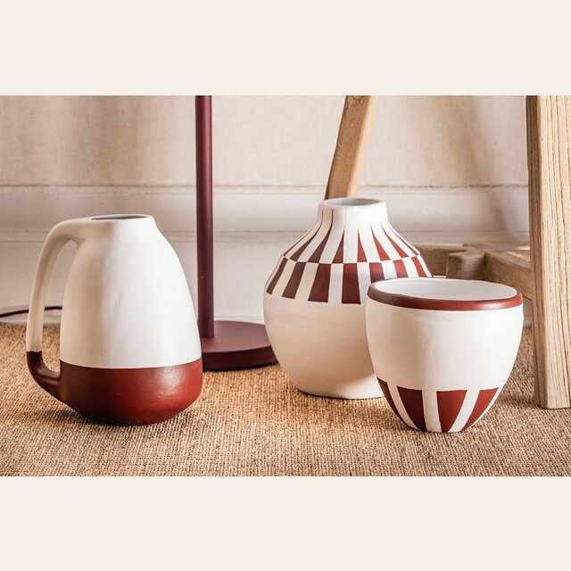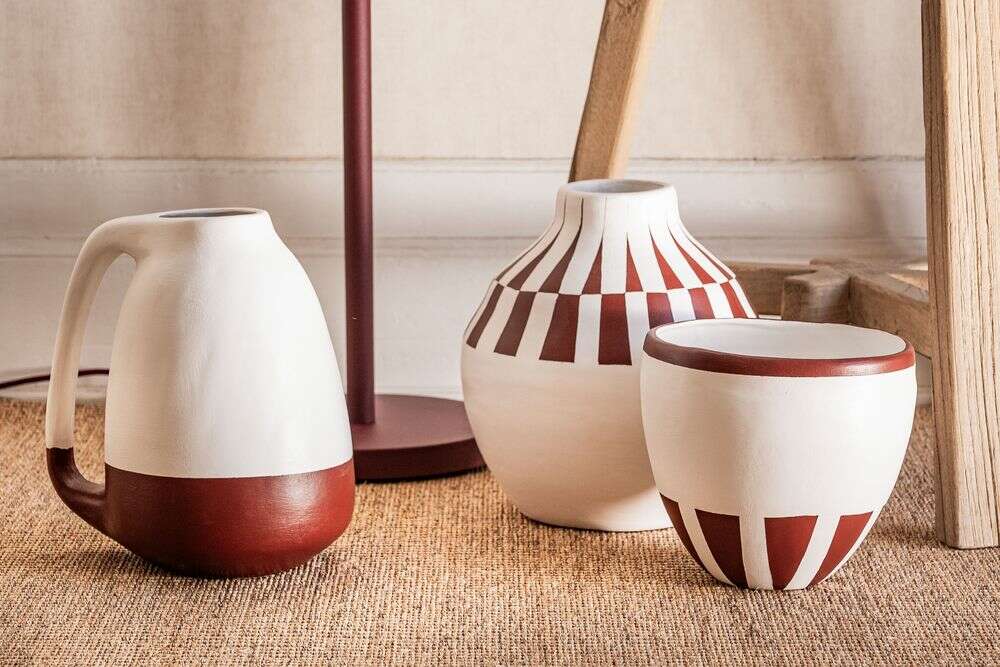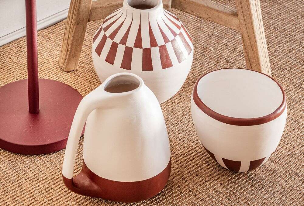 Colección de vasijas de cerámica pintadas a mano: piezas 100% artesanales fabricadas en Uruguay.