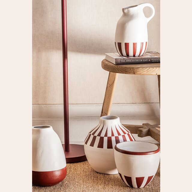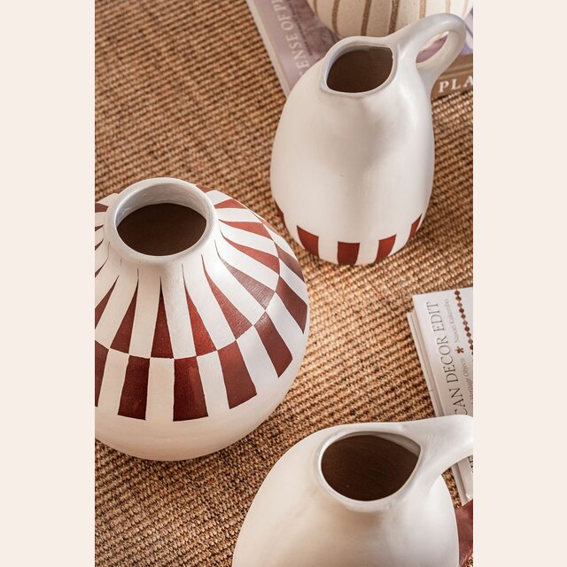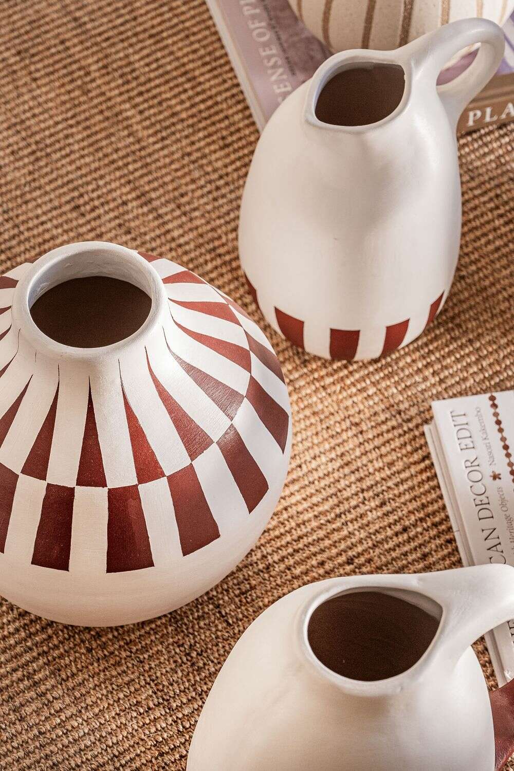 Colección de vasijas de cerámica pintadas a mano: piezas 100% artesanales fabricadas en Uruguay.